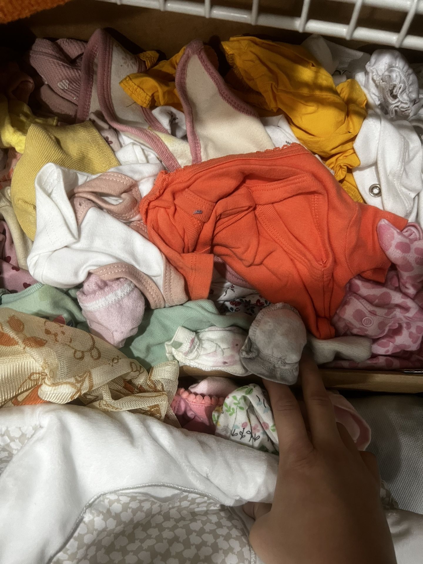 I have 5 boxes of baby clothes for baby girls sizes NB to 9 Months it’s all mixed up I’m selling all outfits 2.00 a outfit pants shirts onesies more than welcome to chose of liking my baby no longer needs these she grew out them