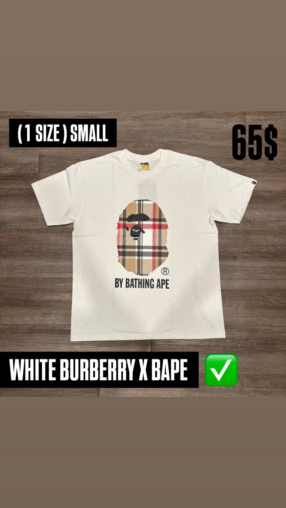 White Burberry x BAPE T-Shirt, size small. Shirt is brand new and never worn. High-quality material and great condition. Perfect for anyone into designer streetwear. Firm on price serious buyers only