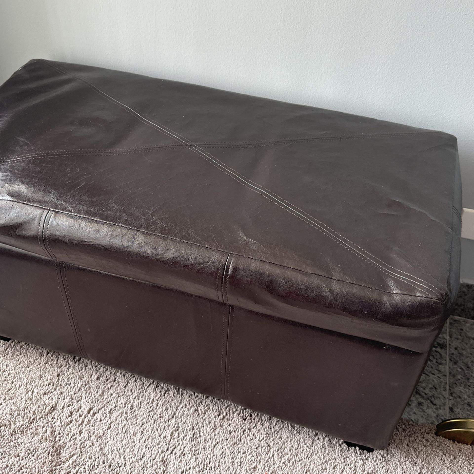 Measurements = L 32 inches by W 16 inches. Brown faux leather ottoman / bench with storage. Great condition. $45