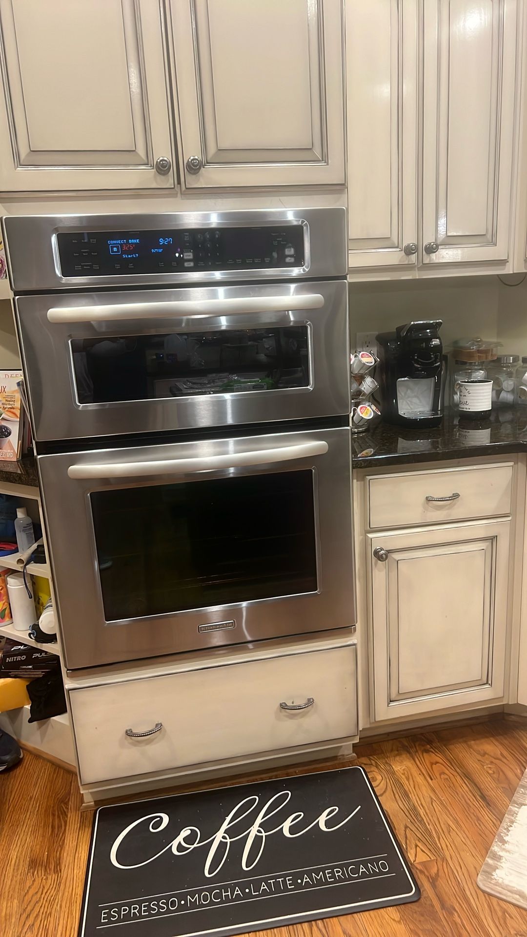 Used “30” Kitchenaid microwave oven combo Works well. It’s convection microwave and oven convection. The only reason getting rid of is we’re remodeling our kitchen no longer want stainless steel appliances. *Please only serious request*