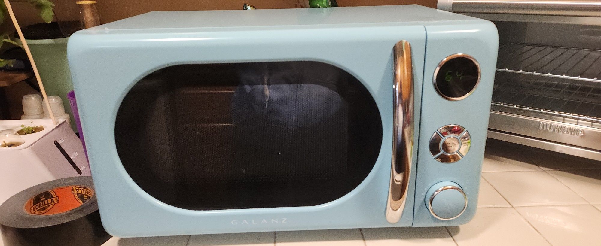 Baby blue microwave Works perfectly and is in great condition. No scratches, no broken parts. Everything it came with is original . Barely a year old! Open to offers. Also, check out everything else on my page. Final moving sale. If interested contact me for a in house sale . Everything must go . Have lots of things at a super deal. Delivery available depending on distance.
