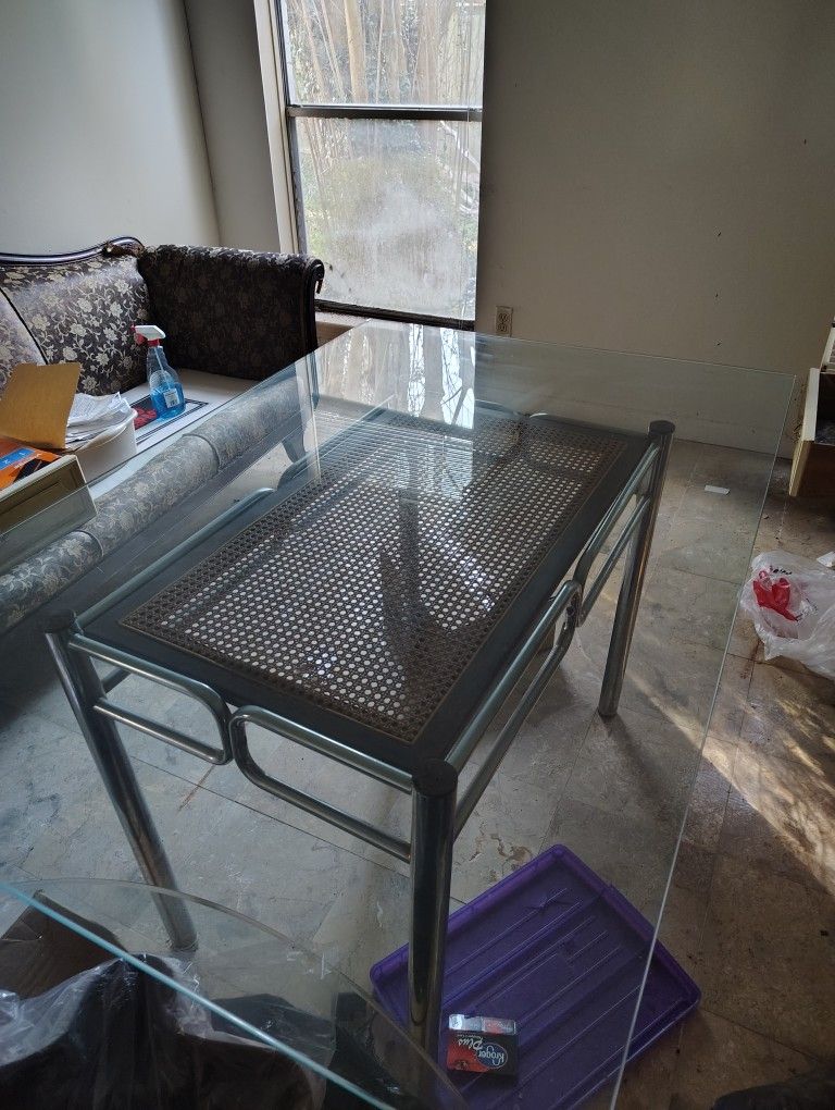3.5 feet wide 4.5 feet long thick glass. No chairs 80.00