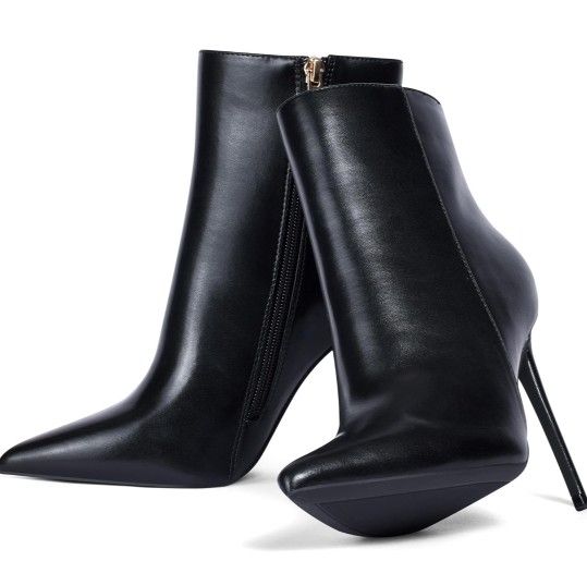 Product details Top highlights About this item Sole materialSynthetic Rubber Shaft heightAnkle Inches Shaft circumference10.5 inches Outer materialLeather About this item 👢Standard Size both in length and width.Characterized 4 inch heel.Shaft Height measures approximately 4.5 inch.Circumference:10.5 inch.There is enough space around the ankle and calf.The best height of heel and shaft will elongate and slim your leg. 👢Timeless & Fashion Design: These ankle boots for women with heel are gorgeous patent leather,trendy and sexy pointed toe silhouette to show your temperament.Women's ankle boots & booties also features a Side zipper so the short boots for women are super easy to slip on and off. 👢Comfort for All-day Walk: The upper of high heel ankle boots is made of high-quality PU material, which is delicate,flexible and not peeling. The durable rubber soleprovides superior traction.Ultra-soft inner materials that will keep your feet more comfortable. You will have an easy time walking around in heeled boots ankle. 👢Intimate Detail Design: .The cute stiletto ankle boots feature a stable heel that provides excellent traction and stability and padded insole for “cloud-like comfort” that make you confortable enough to wear all day long.The zipper are enough firm and smooth sliding to make you more easier to slip on and off your comfy pointed toe booties. 👢All-match Ankle Stiletto Heel Boots: These booties women ankle boots are not only insanely stylish, but they are super comfortable, too. The ankle-high silhouette is super versatile and can be worn with everything from jeans to flowy dresses,pants to short skirts...The dress heeled ankle booties are a perfect showcase for elegance, confidence and beauty.