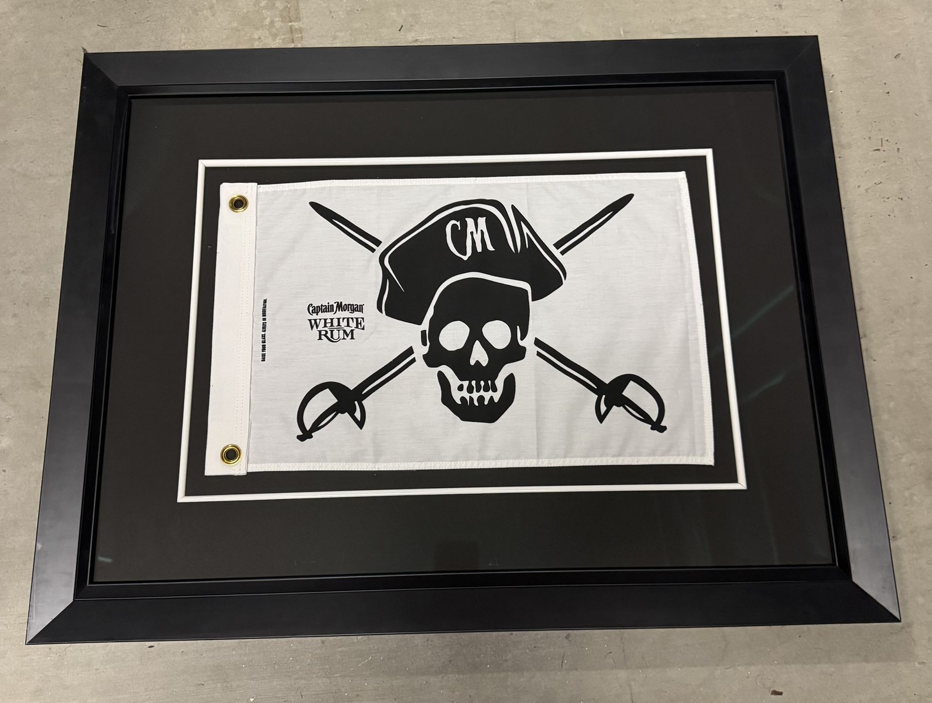 Captain Morgan White Pirate Flag. Professionally framed. 33"x 24"