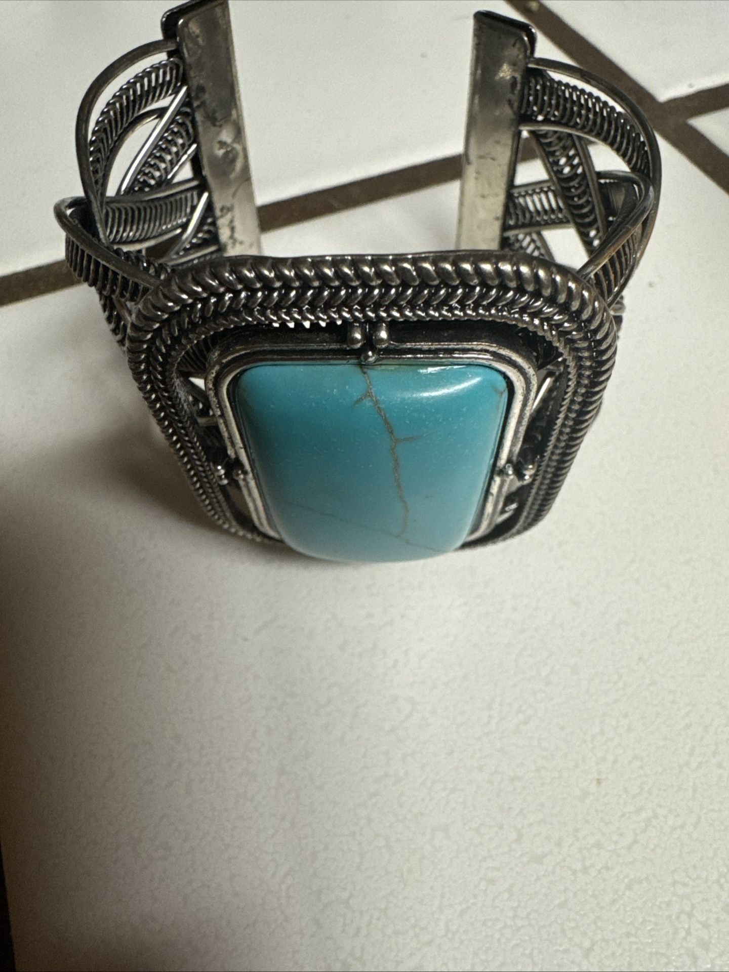 All sizes adjustable band. Heavy metal. Very pretty. Only worn maybe 2 times.