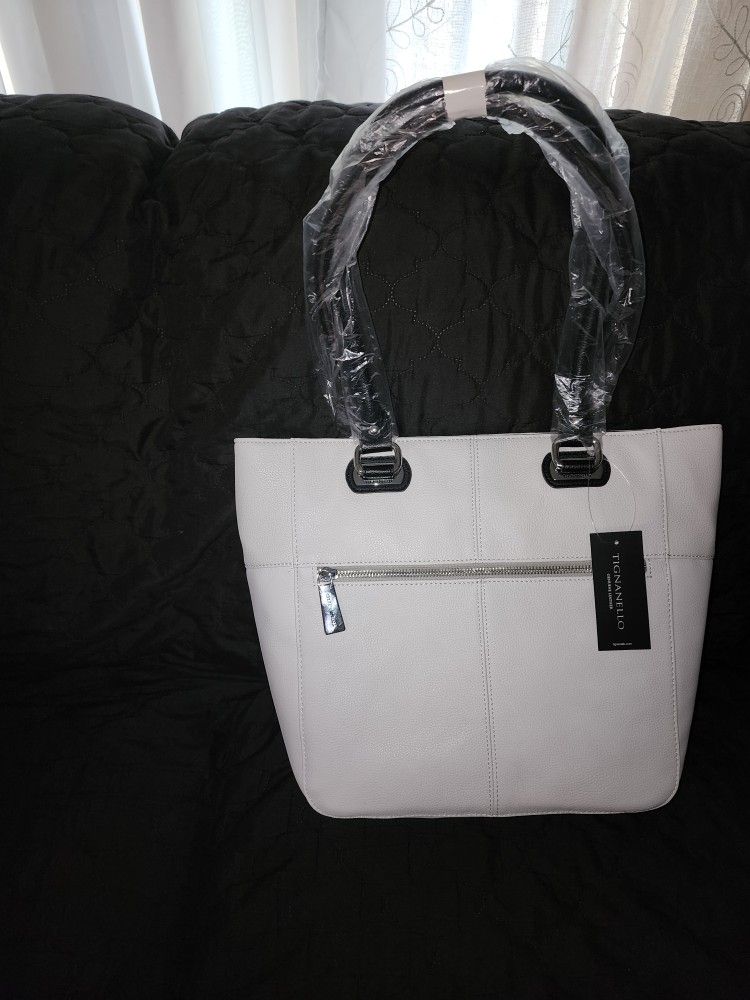 New beautifull large bag genuine leather white/black. Size 11.75in × 13x 4in. New with a tag I paid $155