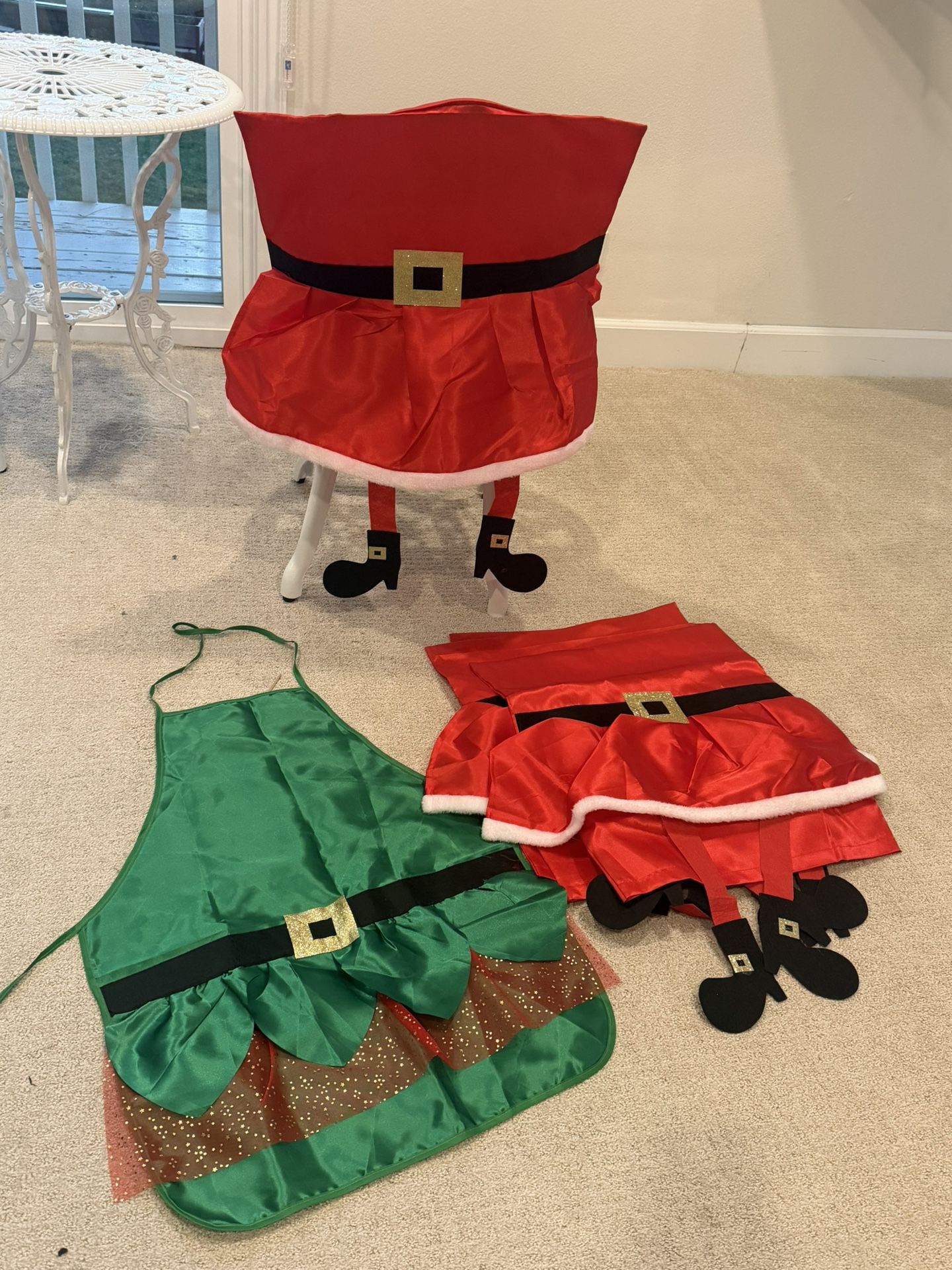 4 Christmas Chair Covers And 1 Kitchen Apron