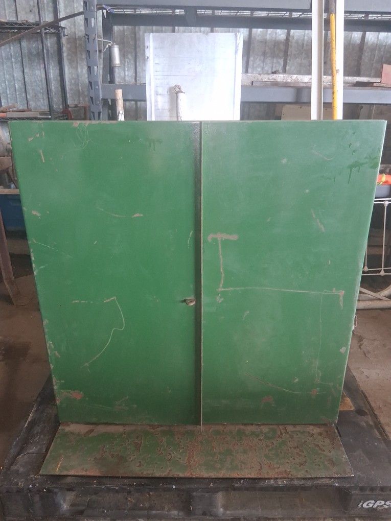 Metal cabinet for sale it has 4 detachable shelves and 4 plexiglass shelf tops.
