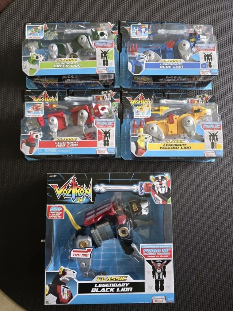 - New in Boxes (5 Lions Packaged Individually) - Voltron 84 Classic Anniversary Figures (Target Exclusive) - $190.00 (No sales tax!) - Celebrate four decades of Voltron’s legendary legacy with the 40th Anniversary Classic ’84 Lions collection from Playmates Toys, available exclusively from Target. This year marks a monumental milestone for the franchise and what better way to let the good times roll than by assembling your very own version of the show’s titular mecha? Originally conceived by visionary network executive Ted Koplar, Voltron: Defender of the Universe was a joint venture between World Events Productions and Toei Animation looking to capitalize on the visually striking animation industry flourishing in Japan. Premiering in September of 1984, the series quickly captivated audiences with its dynamic design and gripping story, which focused on a fearless team of heroes piloting a fleet of combinable lions in their battles with the nefarious Drule Empire. Once united, they would form the mighty Voltron. The series became one of the top-rated children’s television shows in North America, birthed one of the most beloved media franchises of all time, and become a cornerstone of 1980s popular culture. In commemoration of this notable journey, Playmates Toys has faithfully recreated the lions with a look-and-feel that harkens back to the originals. Each of the five fully articulated figures — black, red, green, blue, and yellow — is meticulously engineered, allowing fans and collectors to relive the excitement of the seminal series. The fun doesn’t end there! Unleash the full power of Voltron as you transform and unite all five robots to assemble a 16-inch incarnation of this legendary guardian. Each lion also comes ready for battle with an array of authentic extras that include everything from spring-loaded missiles and beam emitters to jaw blades, laser cannons, and more. Moreover, the Red and Green Lions, which transform to become Voltron’s arms, are packaged with the iconic Blazing Sword and shield — essential elements within the arsenal of the awesome automaton! The heart of this spectacular collection is the awe-inspiring Black Lion. Majestic and formidable, the imposing figure not only forms the head and torso of Voltron, but also boasts built-in electronics that deliver over 60 phrases and sound effects taken straight from the television show! Crafted to withstand the rigours of both display and play, the Voltron 40th Anniversary Classic ‘84 Lions are the ultimate tribute to this cultural phenomenon.