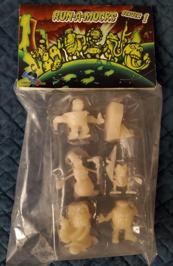Glow in the Dark Run-a-Mucks 2019 Series 1 - 6 total figures new in pack Last Resort Toys Each figure designed by a different artists. Cool Glow in the Dark and UV active!! See photos Purchased at Designercon Anaheim, Ca Designercon Exclusive