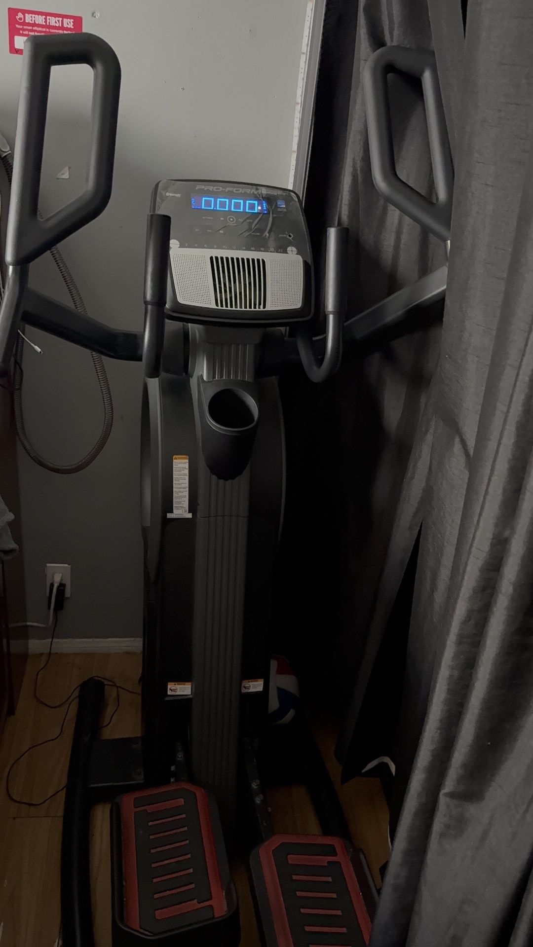 ProForm elliptical trainer purchased from Costco. Original price: $700 Asking price: $500 Hardly used (only about 3 times) and in excellent, new condition. Everything works perfectly, including the digital display and built-in fan. Features multiple workout settings and resistance levels. Must be plugged in to operate. Selling simply because it doesn’t get used. Pickup only — buyer must come pick it up.