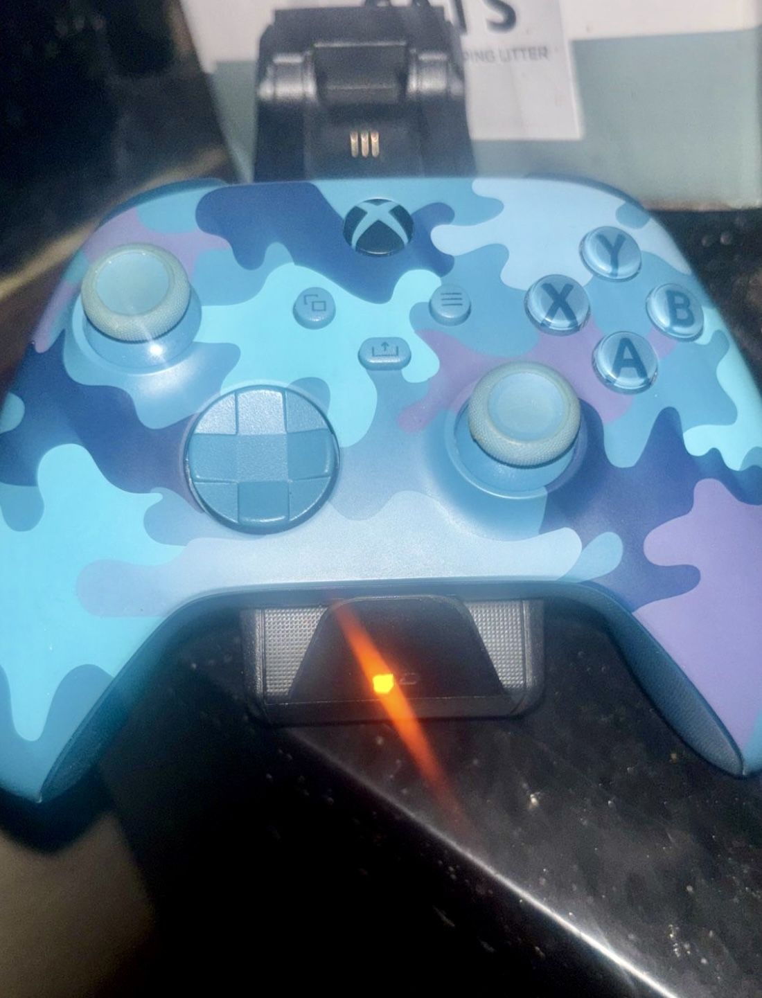 Blue camo excellent condition Bluetooth wireless Xbox controller costed me $70 at the store but since I no longer use it l'm offering it for $35 and I have a charging station with 2 rechargeable batteries that costed me $35 I'm offering it for $15 You can save around $60 buying these rarely used items from me instead of the store which would be over $100 Discount if you pickup today in Cicero ask about it.