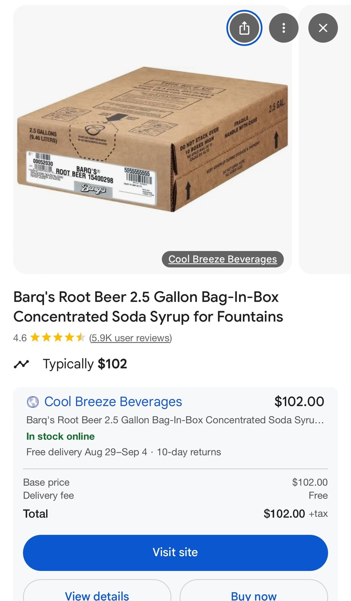 Barq's Root Beer 2.5 Gallon Bag-In-Box Concentrated Soda Syrup for Fountains