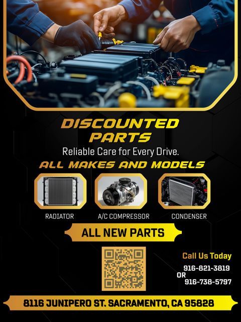 We Sell Car Parts For Most Make Model! Toyota - Honda - Nissan - Chevy - Hyundai - Ford BMW - Mercedes - Jeep - Dodge - Chrysler and more Looking For Auto Repair? We Offer General Auto Repair Services.... Transmission Replacement Engine Replacement Water Pump Replacement Timing Belts Replacement Radiator Replacement Alternator Replacement Starters Replacement Brakes Replacement And More!!! Call Us Now: 916-738-5797 or 916-821-3819 Licensed And Insured Shop.
