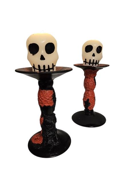 Halloween glass 2 sided candle holders (2) handpainted using vintage materials