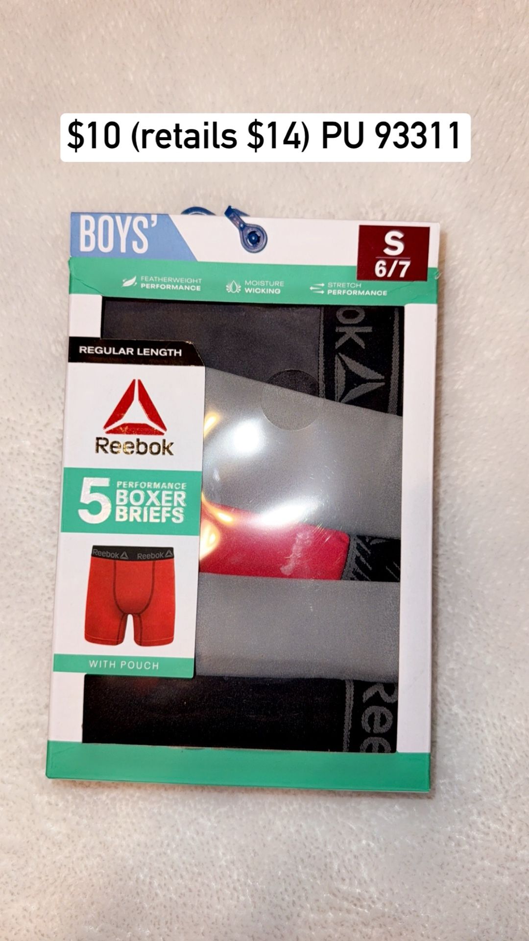 Boys size 6/7 Reebok boxer briefs. 5 pack new with tags. Asking $8 (retails $14)
