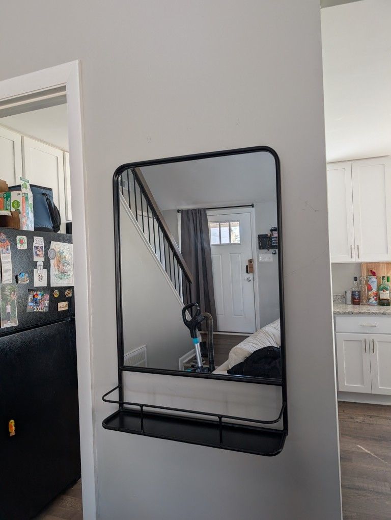 Black metal mirror shelf - 30"H x 20" W x 5" shelf Perfect for displaying plants, candles for any entryway or wall. Venmo or cash only. Local pickup only.