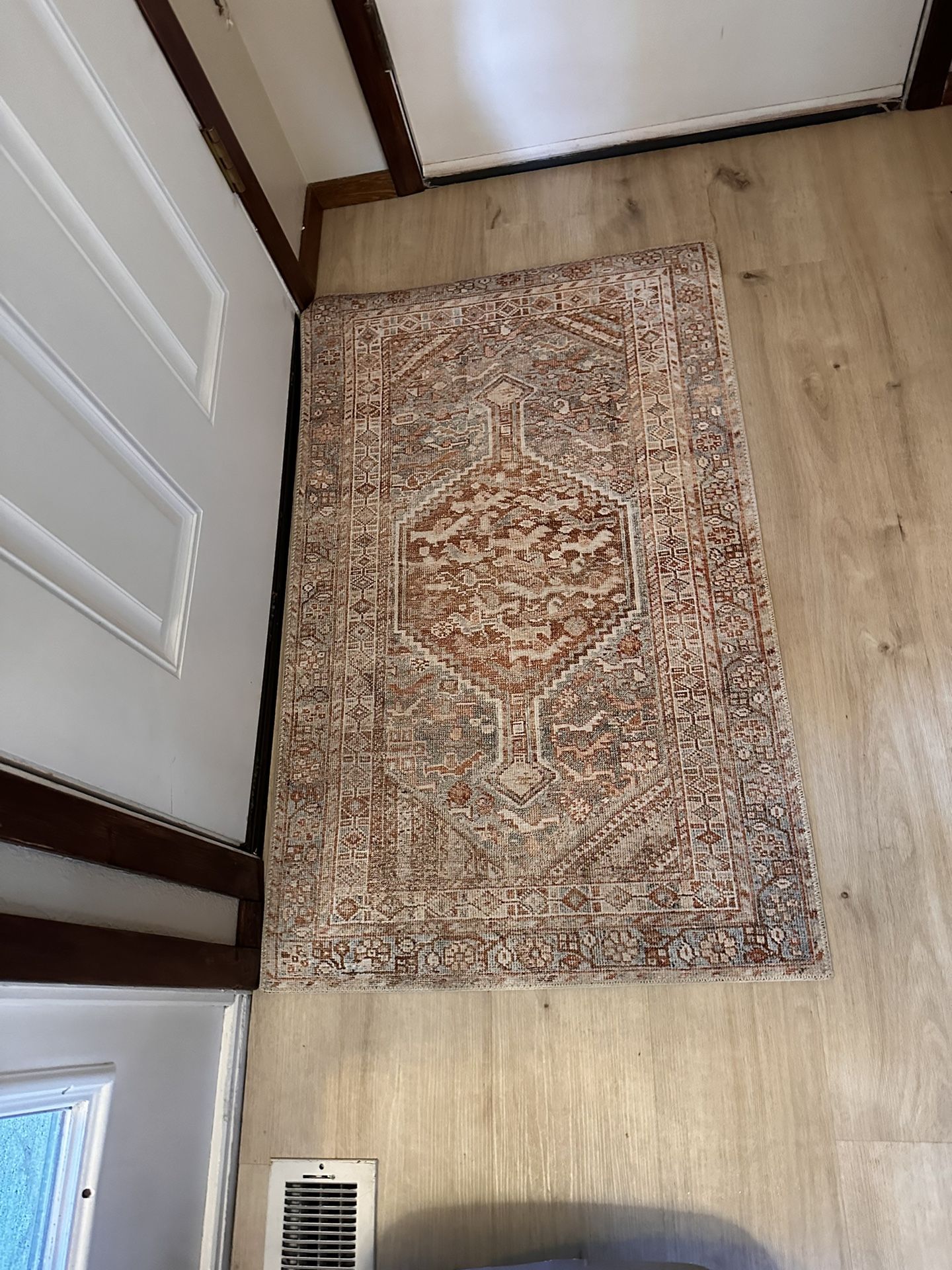 2’3” x 3’ x 9” Tangerine mist accent rug. Brand new. Bought two and didn’t account for my toilet sticking out and the rug doesn’t fit. Return shipping cost is 20$ and I’m not willing to pay that. Selling the new one in the package.