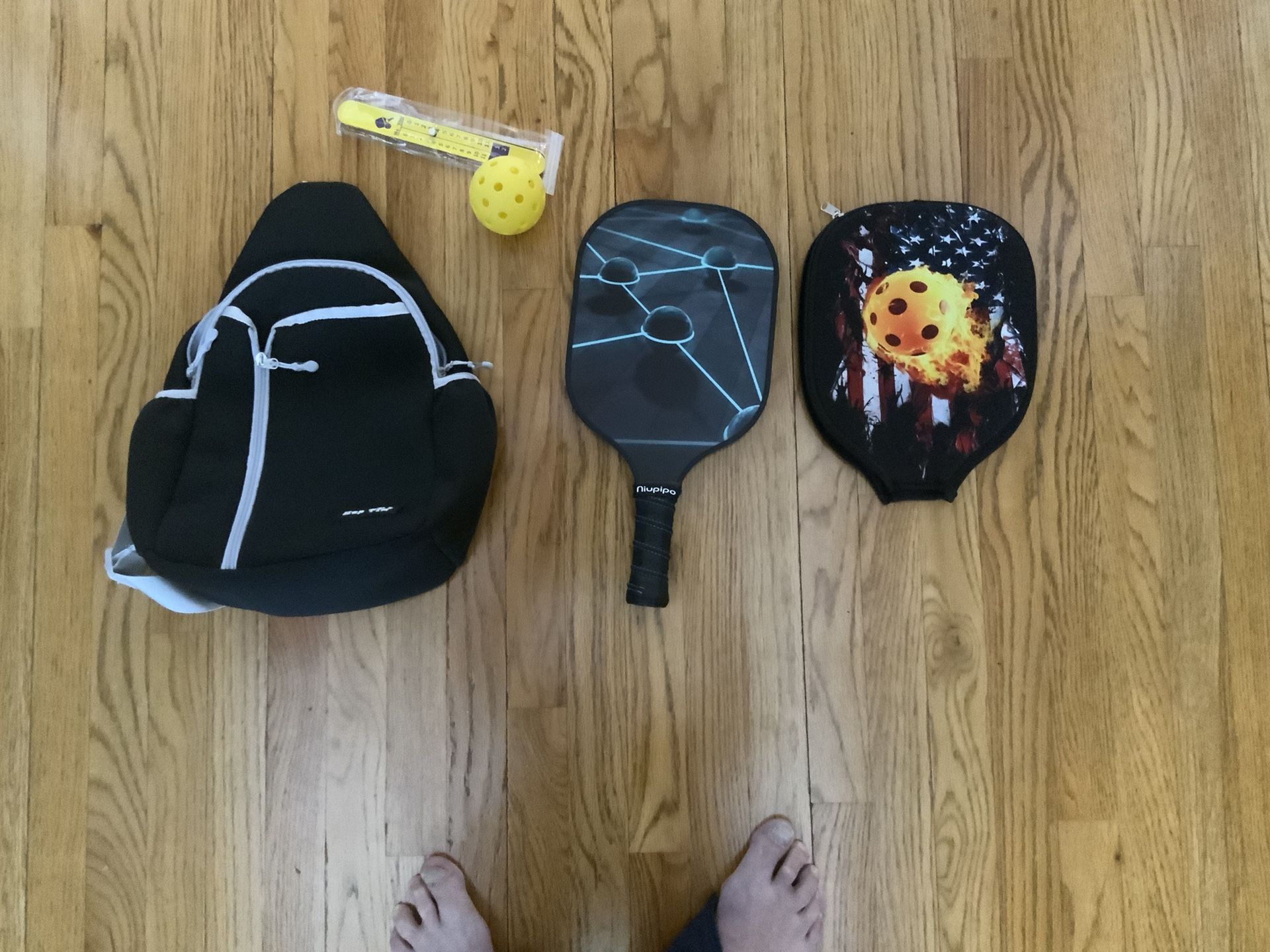 Pickleball Bundle: Carrying Bag, Cover,pickleball,scorekeeper, And Hardly Used Paddle.
