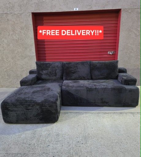Beautiful Boneless Sectional Couch Modern Elegant Design Dark Gray Corduroy Fabric No Damage to Frame No Tears No Stains No Scratches Very Clean In Excellent Condition!! Measures 8ft x 5ft *Free Delivery Within 15 Mile Radius!* !!CASH/CREDIT CARD/DEBIT/ZELLE/VENMO ALL ACCEPTED!! !!Payment upon delivery or pick up!! *To see other sofas available just click my profile!