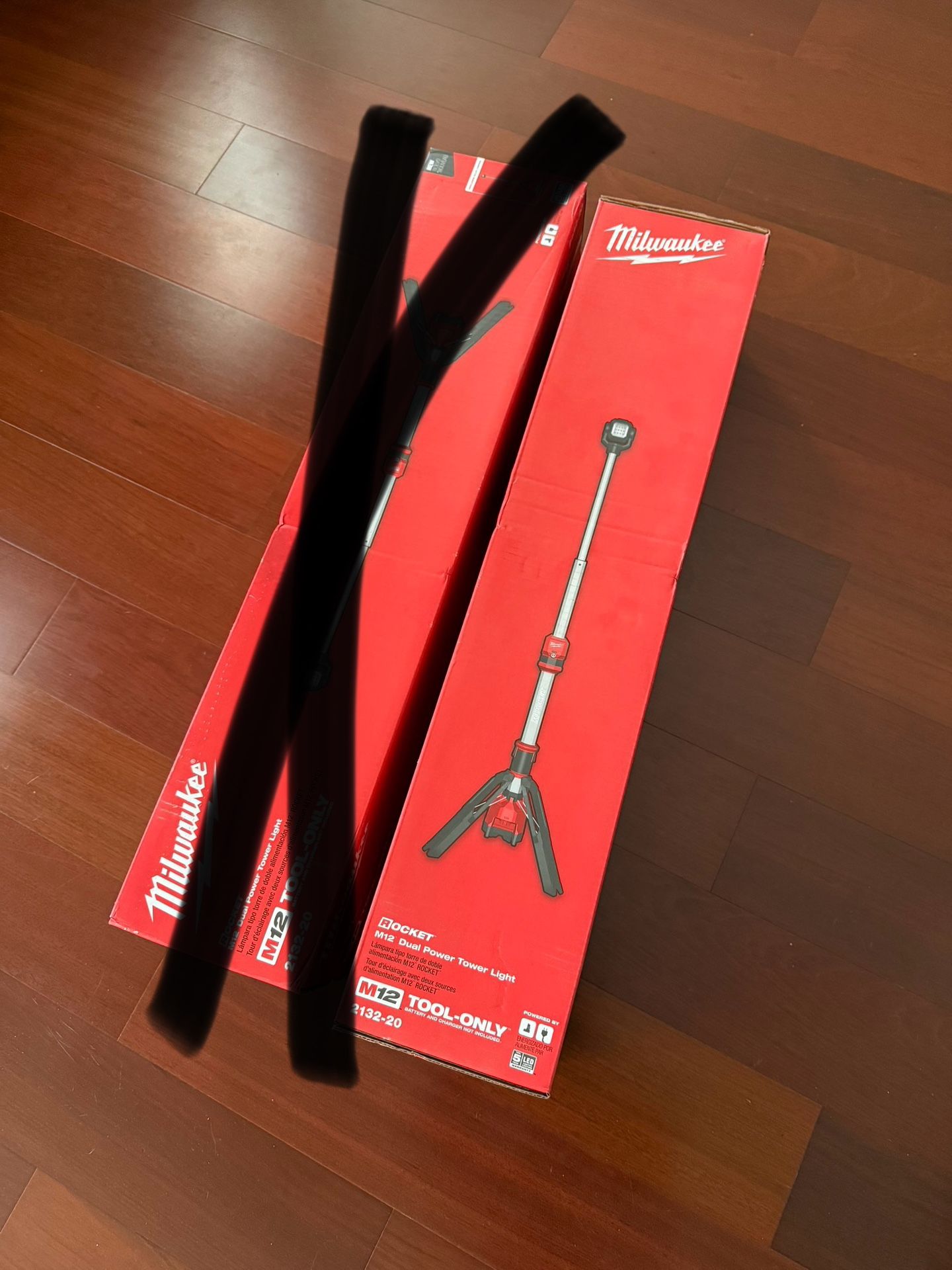 -brand new in box Milwaukee M12 Rocket dual power tower light -TOOL ONLY, no batteries included -Part #2132-20 -$179. Retails for $200+tax at HD. Located in Cobb county, GA Runs on M12 batteries or extension cord. 1400 lumens high, 700 lumens low w/ TrueView technology. With XC 6Ah battery, 4 hr runtime on high and 10 hrs on low. 5 second setup. 3 different heights from 3’ to max height of 5’8. Light head rotates 210 degree vertically and 270 degree horizontal. Bought from Home Depot, no longer needed