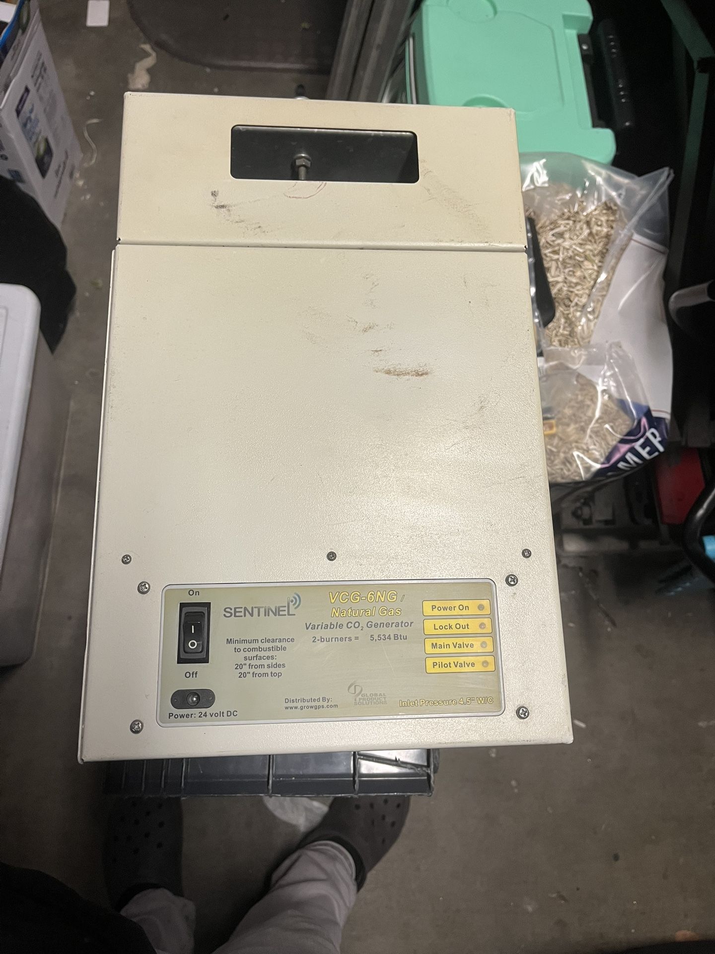 The VCG-6 generators are among the safest and most advanced CO2 generators available today. These top of the line CO2 generators provide optimal CO2 output for your specific need and can be adjusted from 3-6 CuFt/hr. These units also offer industry-leading safety features to help put your mind at ease. Features: Clean & consistent burning. Variable CO2 output from 3-6 cuft CO2/hr Comes with 2 clean burning brass burners pre-installed and the appropriate regulator & hose Electronic ignition control module that eliminates the open lit flame some units use for safer operation. 2 brass burners have been designed to burn cleaner and produce a consistent blue flame. Tip-over switch automatically shuts off the entire unit in the event the unit fall or tips over. Dual solenoid valves provide redundant safety not found on most CO2 generators. Good working condition Ideal for dense indoor flowers I’ve got additional high end growing equipment for sale so please check out my posts