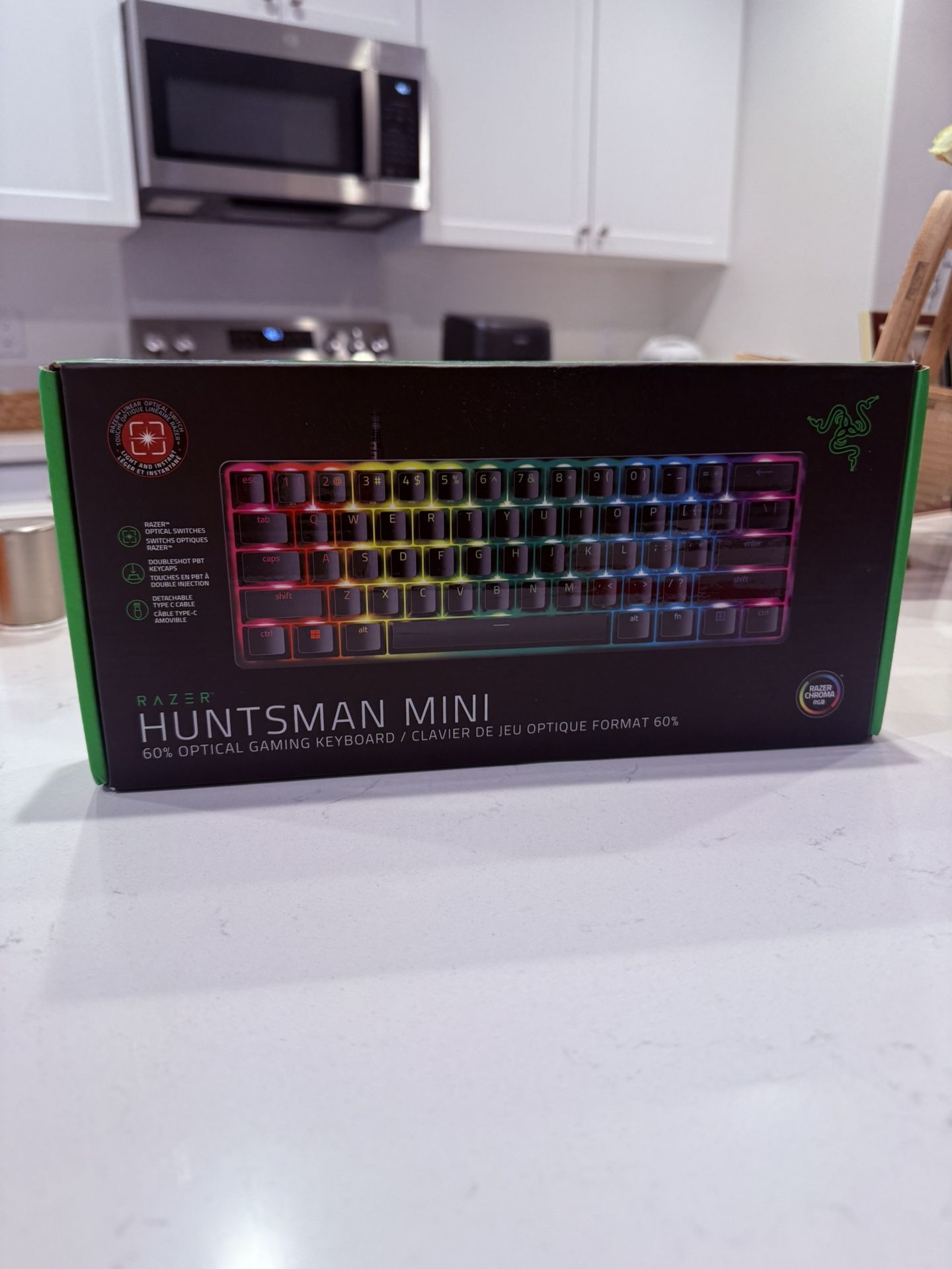 Brand new sealed Originally $130 Razer Huntsman Mini 60% Gaming Keyboard: Linear Optical Switches - Rapid Trigger Mode - Chroma RGB Lighting - PBT Keycaps - Onboard Memory - Snap Tap - Classic Black