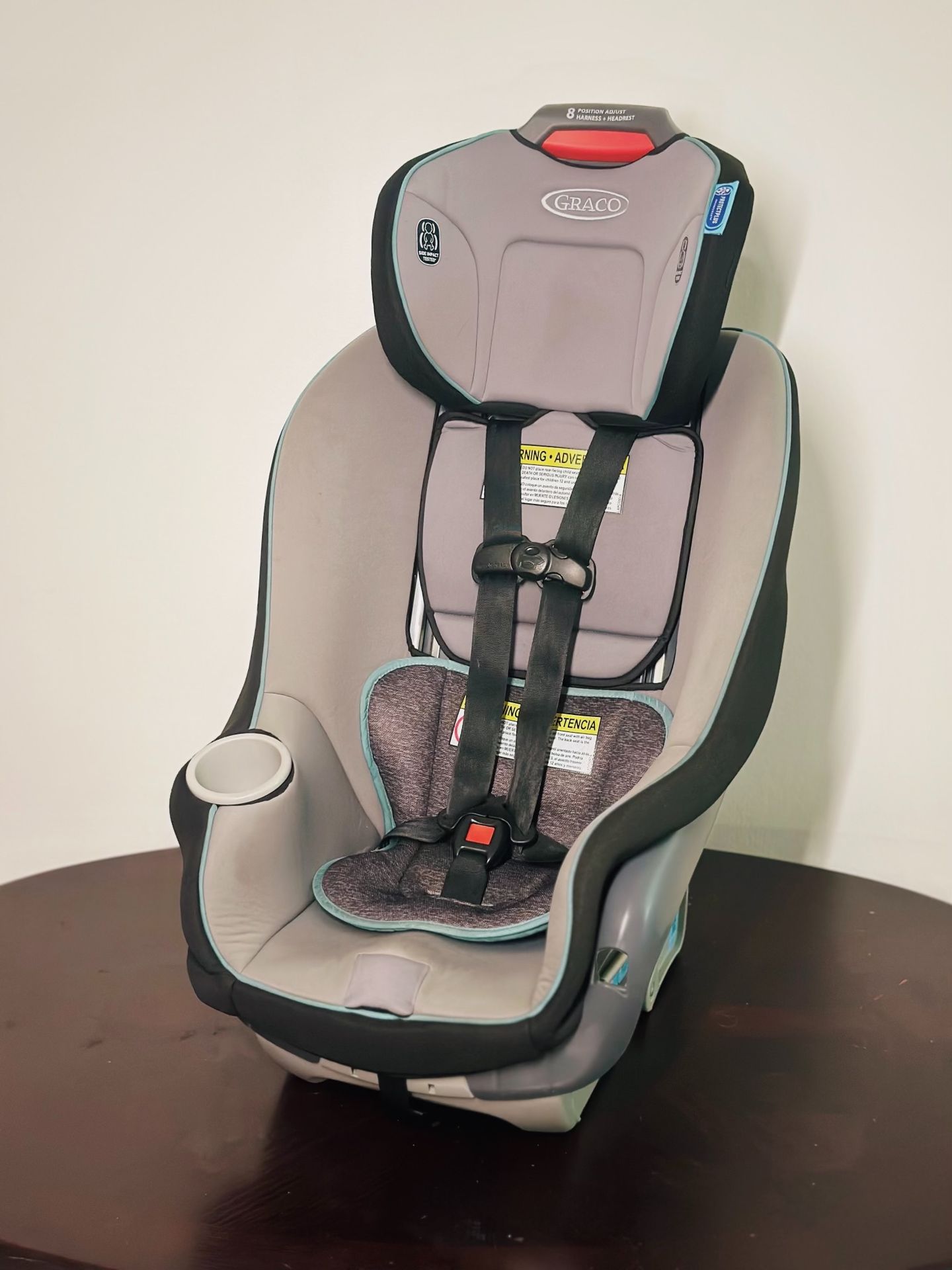 The Graco Contender 65 Convertible Car Seat holds a rear-facing infant from 5 to 40 pounds and keeps a forward-facing child in a harness from 20 to 65 pounds. It easily grows with your child with the Simply Safe Adjust harness system, which automatically adjusts both the harness and headrest height at the same time. This infant and toddler car seat features EPS foam, removable infant head and body support and two buckle positions to keep baby snug and secure.