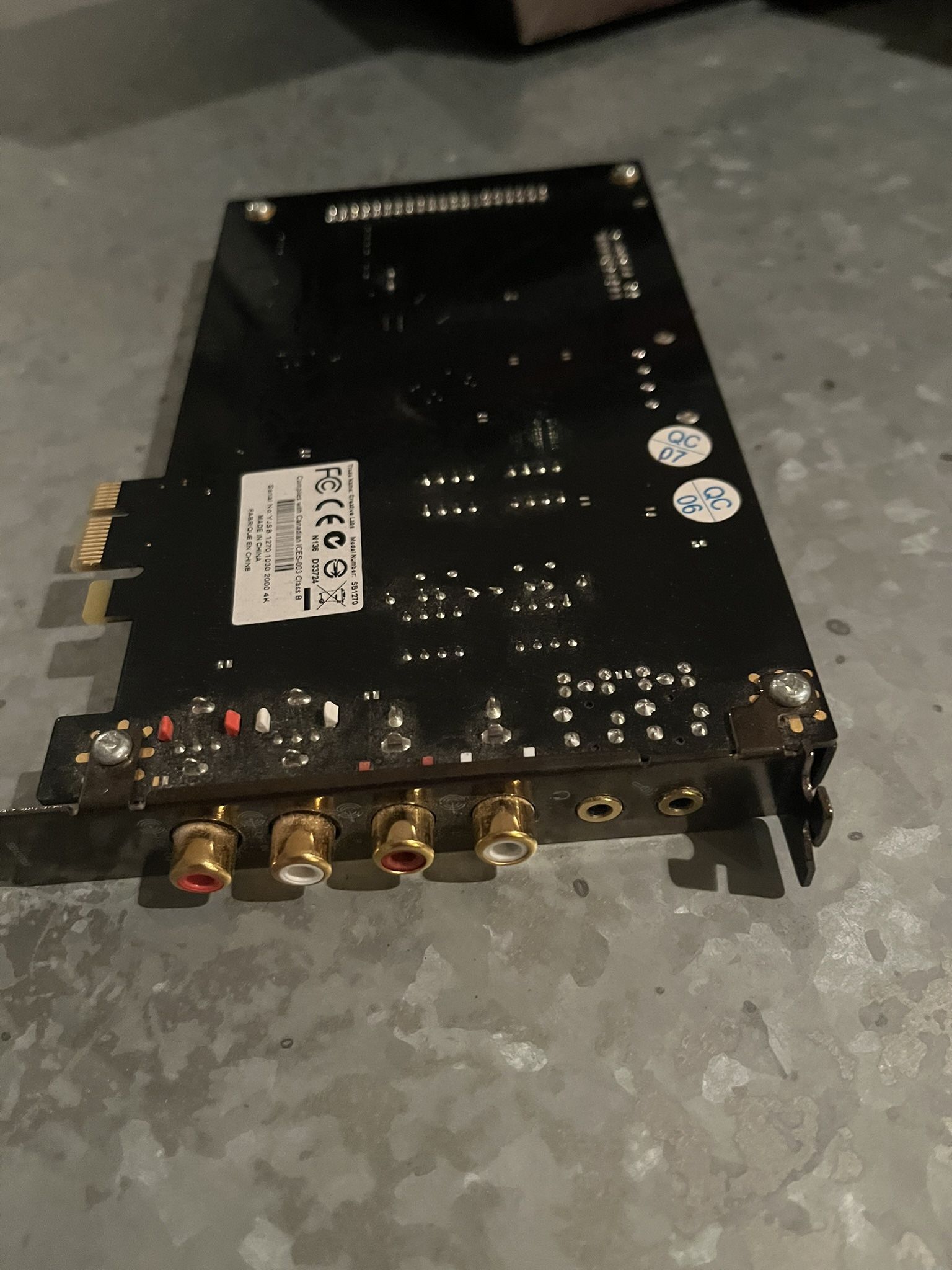 Sound Blaster X-Fi Titanium HD - Computer Sound Card. Used. Known Working. "* Creative's latest audio revolution, Sound Blaster® X-FiTM Titanium HD! This premium audio product features cutting edge technologies from the leaders in PC audio to transform your computer into a multimedia entertainment center. Enjoy true High-Definition (HD) quality audio from your HD movies and experience the latest THX® TruStudio PC technology that enhances the sound in your music, movies and games!" https://offerup.com/redirect/?o=aHR0cHM6Ly9pbWcuY3JlYXRpdmUuY29tL2ltYWdlcy9wcm9kdWN0cy9sYXJnZS9wZHRfMTk3NDkucG5nP3dpZHRoPTIzNiZmb3JtYXQ9anBnJnY9 https://offerup.com/redirect/?o=aHR0cHM6Ly9zdXBwb3J0LmNyZWF0aXZlLmNvbS9Qcm9kdWN0cy9Qcm9kdWN0RGV0YWlscy5hc3B4P3Byb2RJRD0xOTc0OSZwcm9kTmFtZT1Tb3VuZCUyMEJsYXN0ZXIlMjBYLUZpJTIwVGl0YW5pdW0lMjBIRA==