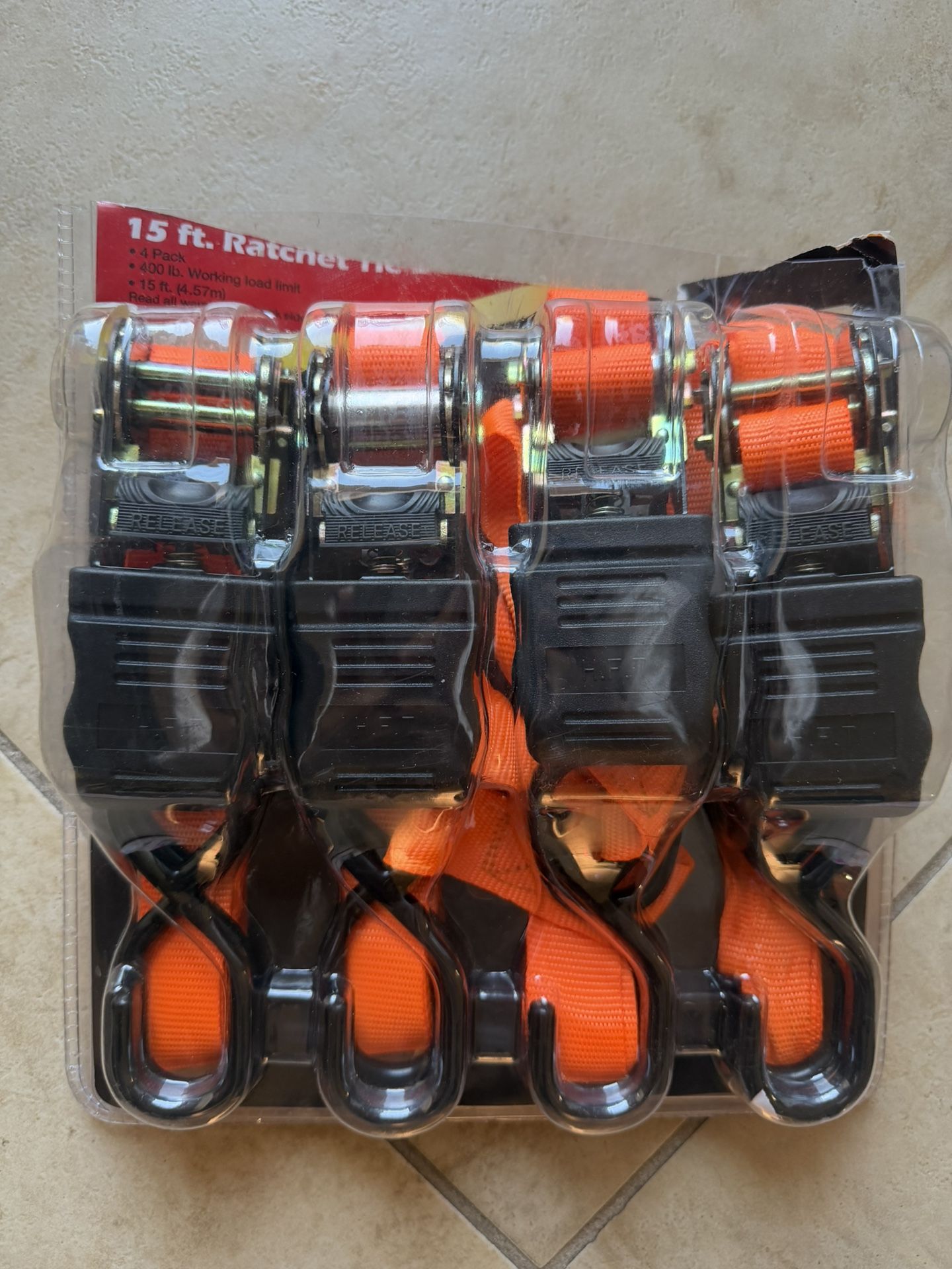 400 lb working load limit 15 ft long Weather resistant 2 straps were used once still like new 2 straps never been used