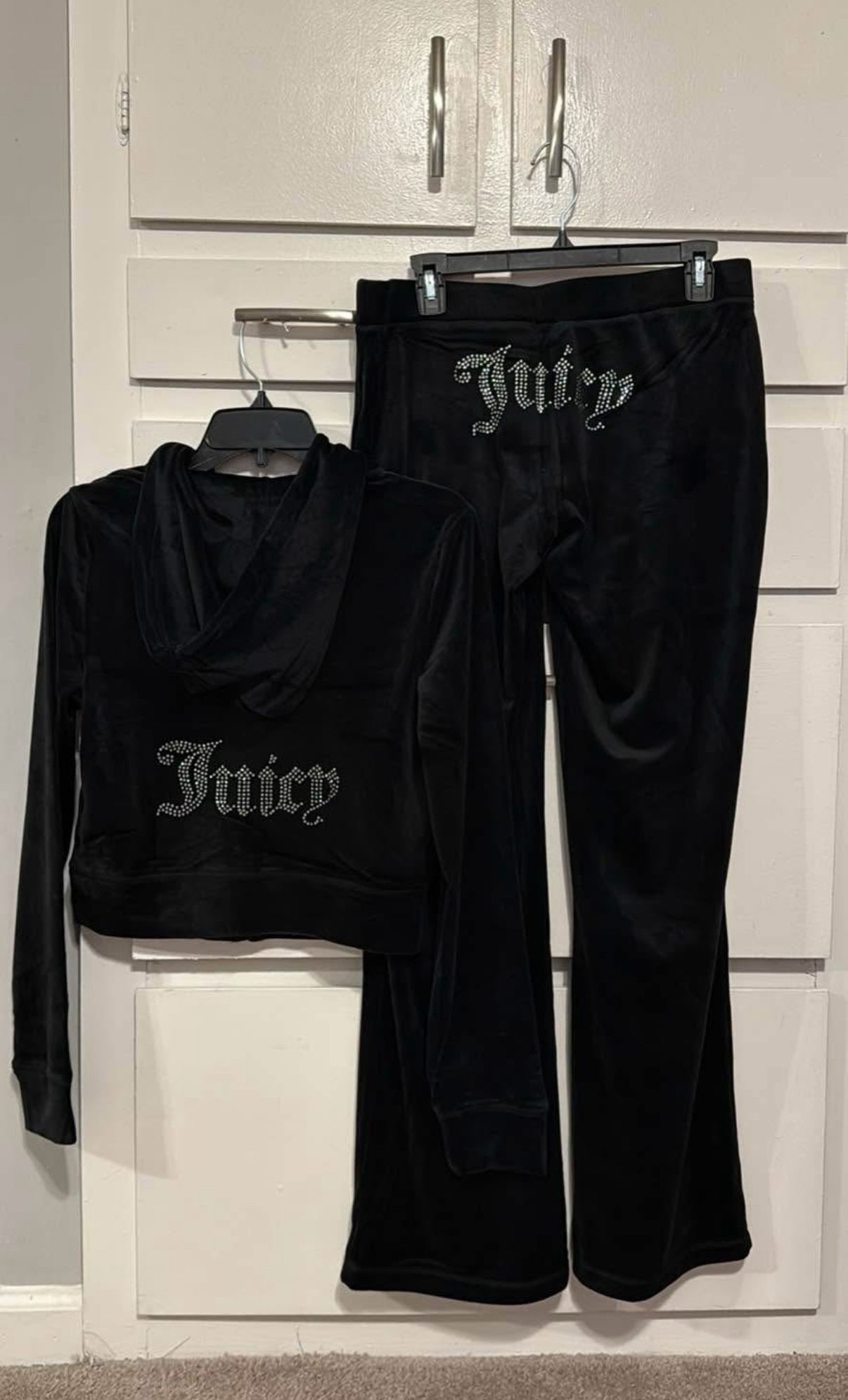Selling this black juicy couture tracksuit as a set (you’ll get both the jacket and pants)! This listing is automatically for the black tracksuit set✨Please let me know if you’re local or need to have it shipped and what size you want~ Price: $85 each set (for both jacket and pants) Size: Small, Medium, Large, XLarge available Condition: NEW Black tracksuits that are available: 🖤 - Small ✨ - Medium ✨ - Large ✨ - X-Large ✨ Note: I also have other colors available for the sets : ) Located in San Jose, can be picked up or shipped 🙂📍 Shipping calculated based on zip code~