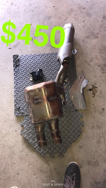 2015 yamaha R1 / r1s / r1m stock exhaust. Has resonator pipe midpipe Servo motor and heat shielding and hardware. Fits 2015 r1 2016 and 2017. Less than a thousand miles on it. Make me an offer or a cool trade. Keywords sport bike r1 exhaust pipes pipe