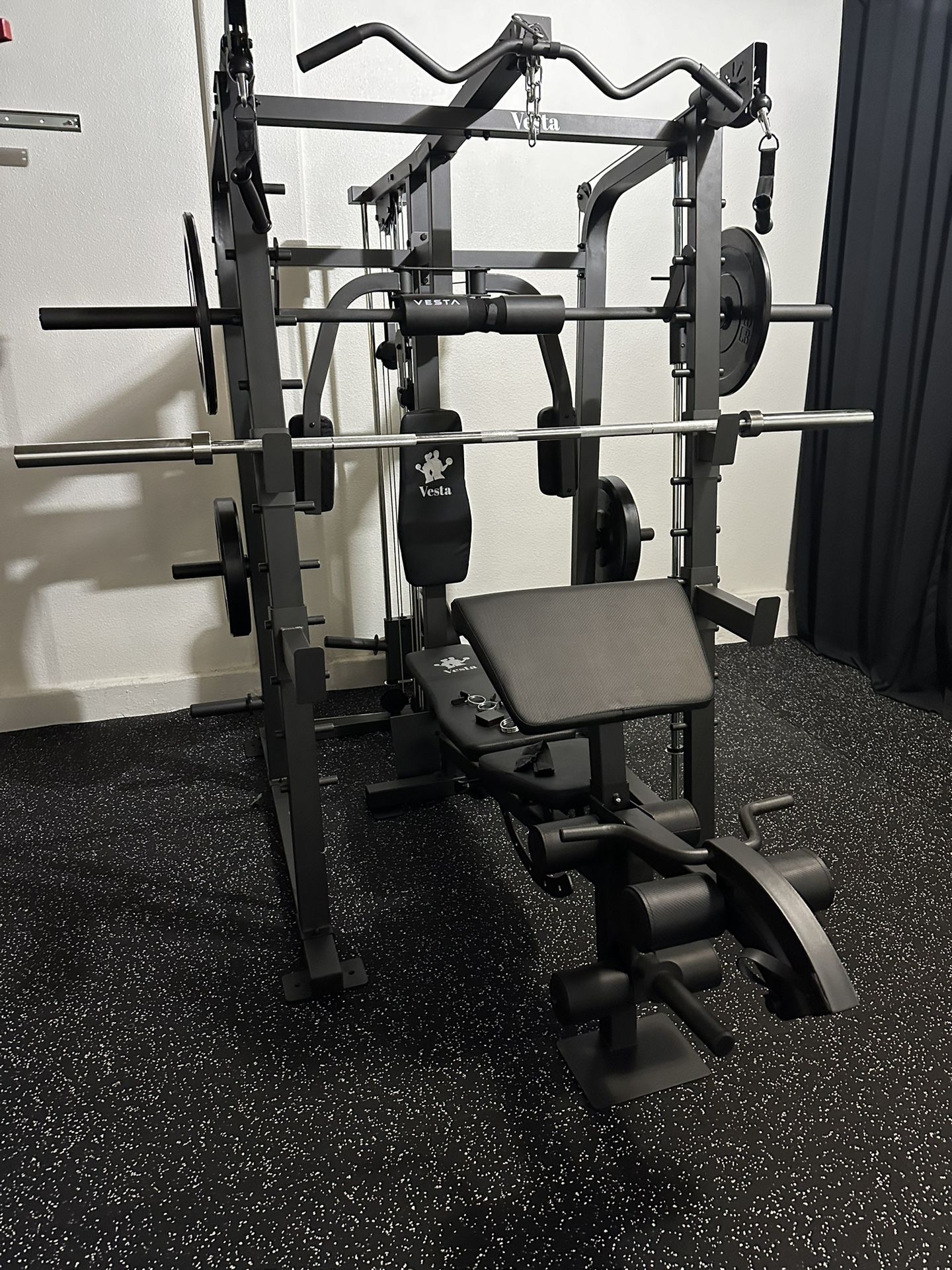 Vesta Fitness Smith Machine 2001 w/Bench Attachment | 230lb Bumpers Weights | 7ft Olympic Bar | Fitness | Gym Equipment | FREE DELIVERY 🚚