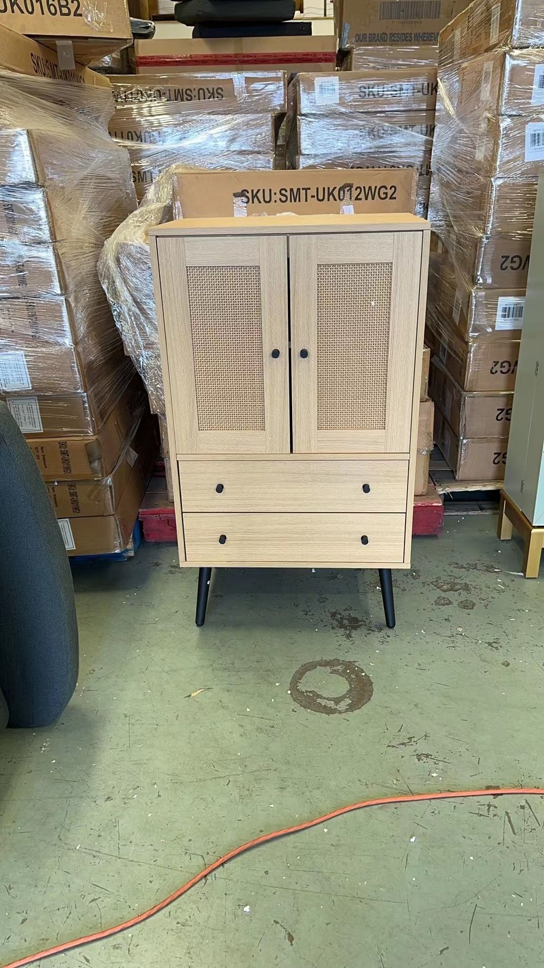 Sideboard Buffet Cabinet, Oak Finish Kitchen Storage Cabinet with Rattan Decorated Doors, Cupboard Console Table Accent Cabinet for Living Room Dining Room Hallway