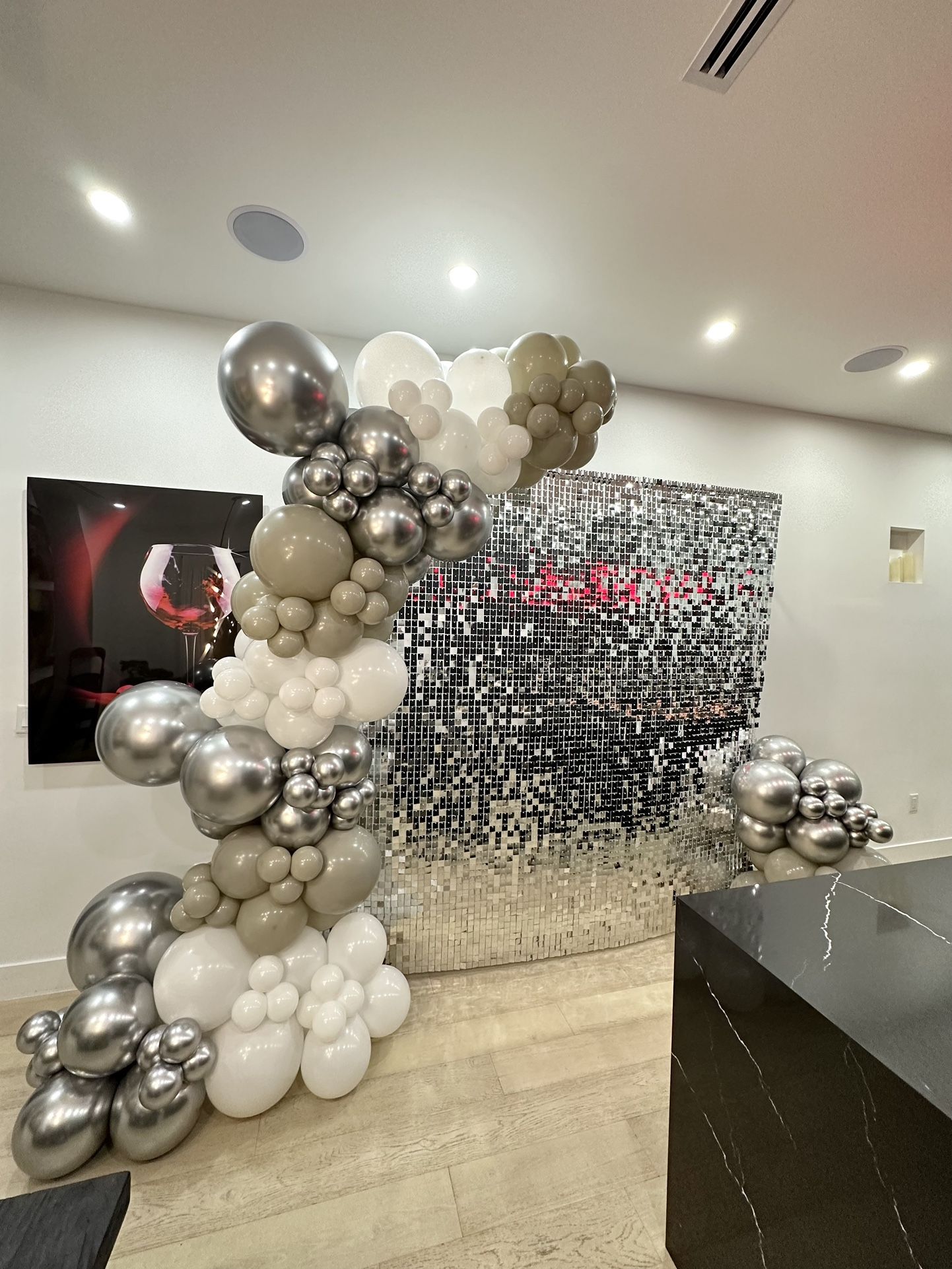 This beautiful shiny shimmer wall is available in all colors & can be customized with any theme balloon garland . Party decor for any occasion. Message for more info ๐