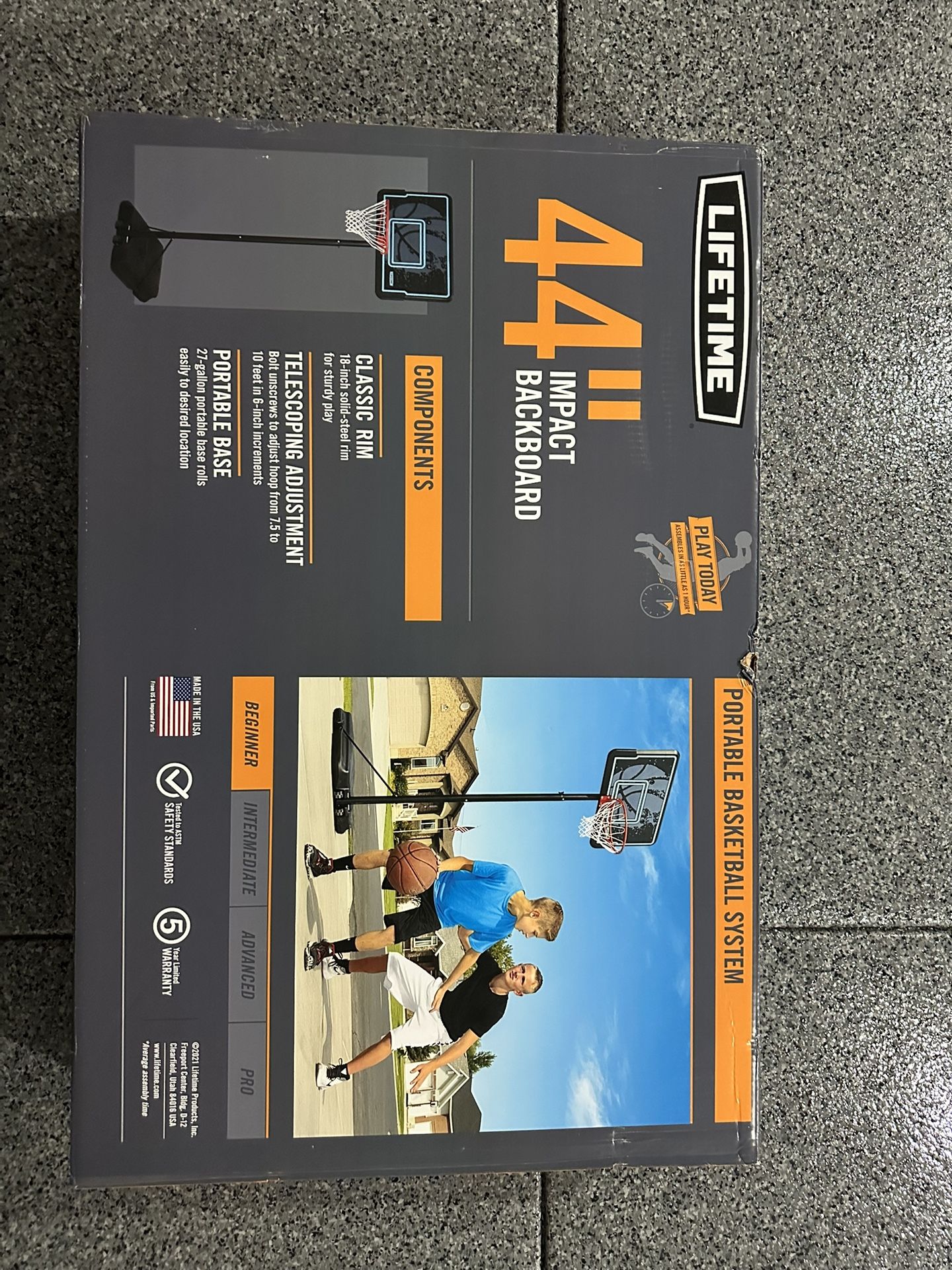 Brand new still in the box never been used. Brackets, base, and the main pole. Doesn’t come with the hoop or the backboard. $40 Basketball 44” impact backboard lifetime