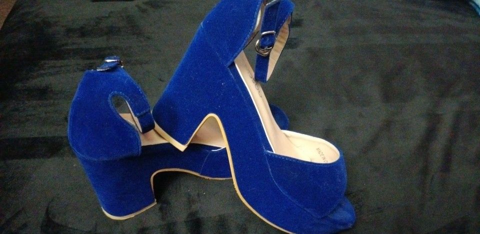 CAMSSOO Platform Heels for Women Chunky Heel Open Toe Ankle Strap velvet Wedges Sandals Wedding Office Dress Shoes. Used once.