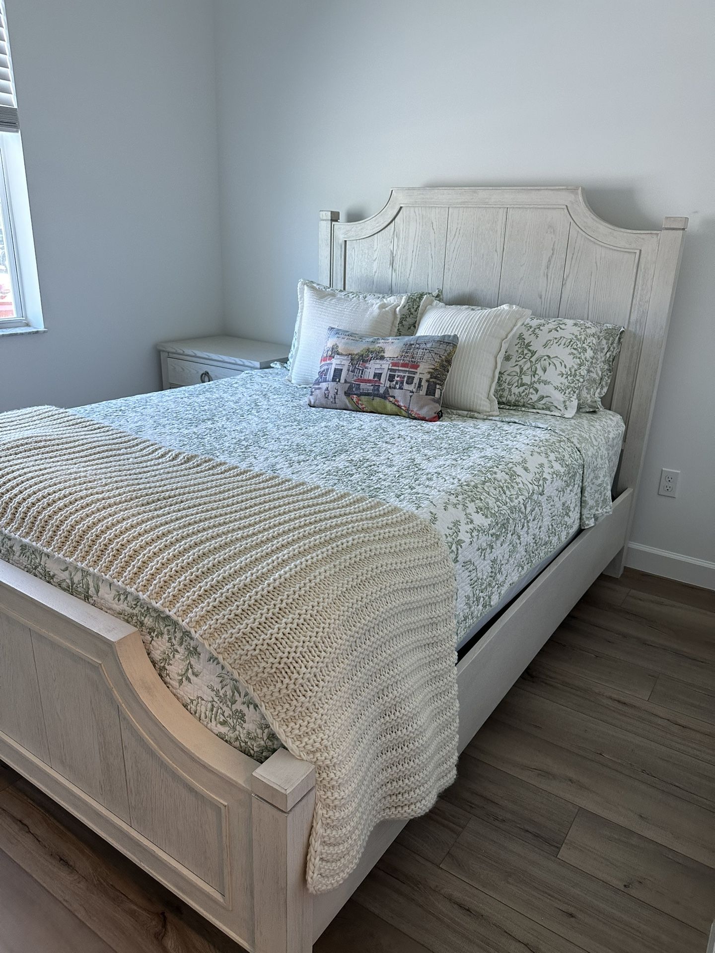 Beautiful queen bedroom set in perfect condition. Purchased at Baers 2 1/2 years ago. Paid over $5000
