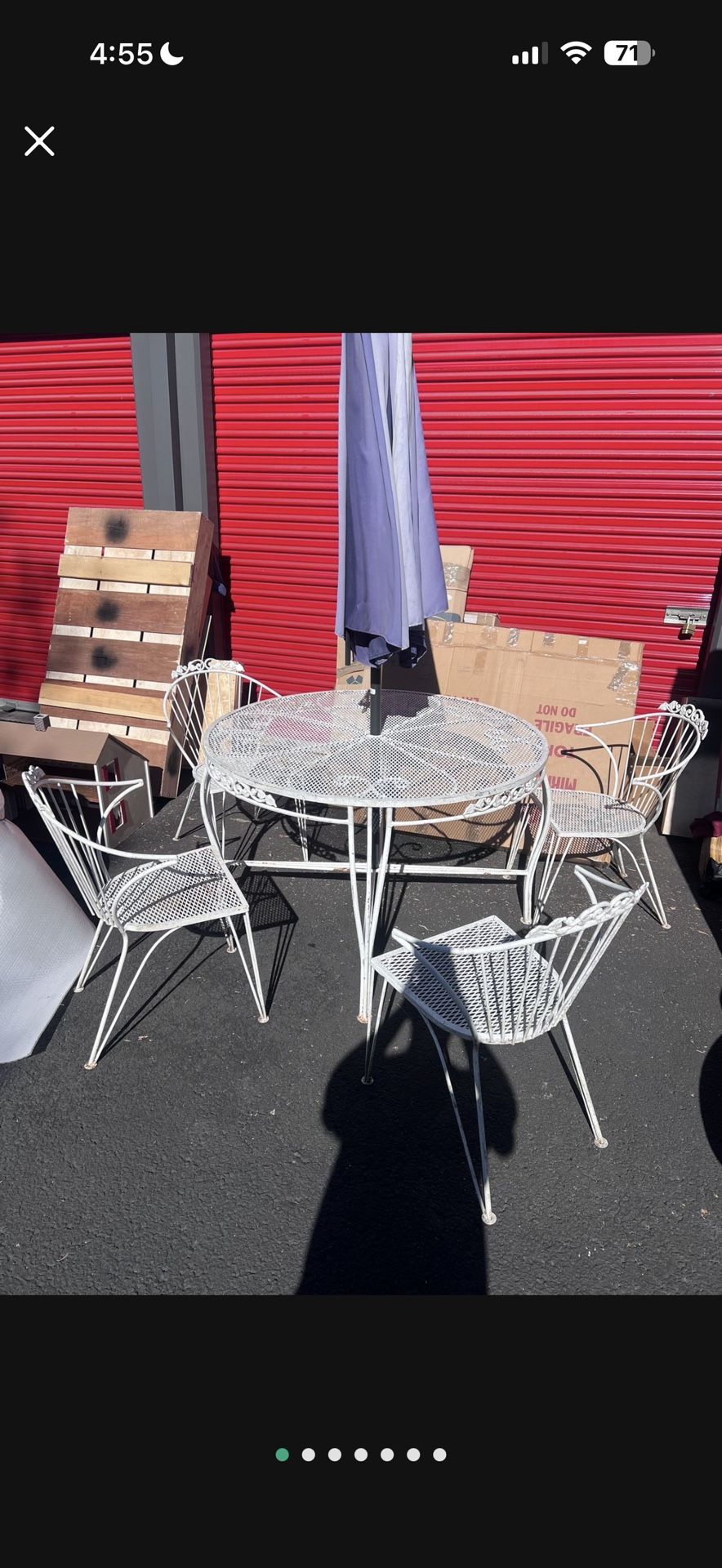 There’s a total of six chairs two of them are not pictured, but are included Umbrella is not included They may need a new coat of paint, Pick up Escondido ZIP Code 92026 Close to San Marcos Costco