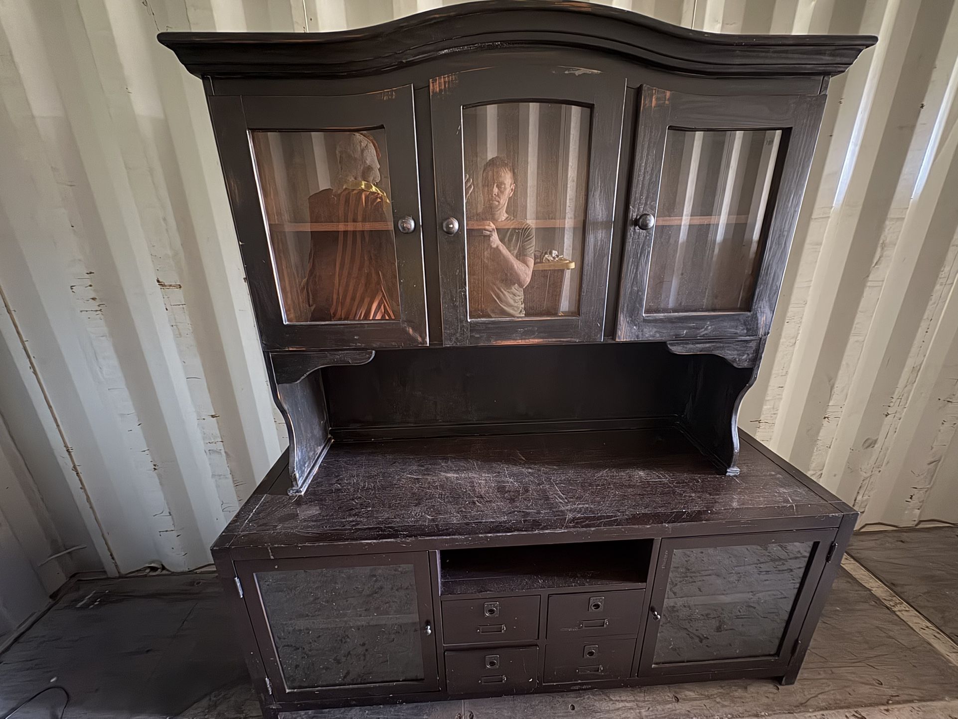 Beautiful old real wood hutch! All drawers work great, glass is nice. Two piece, easy to move. Dimensions: Length: 5’ 5” height: 5’10” Width: 1’ 8”