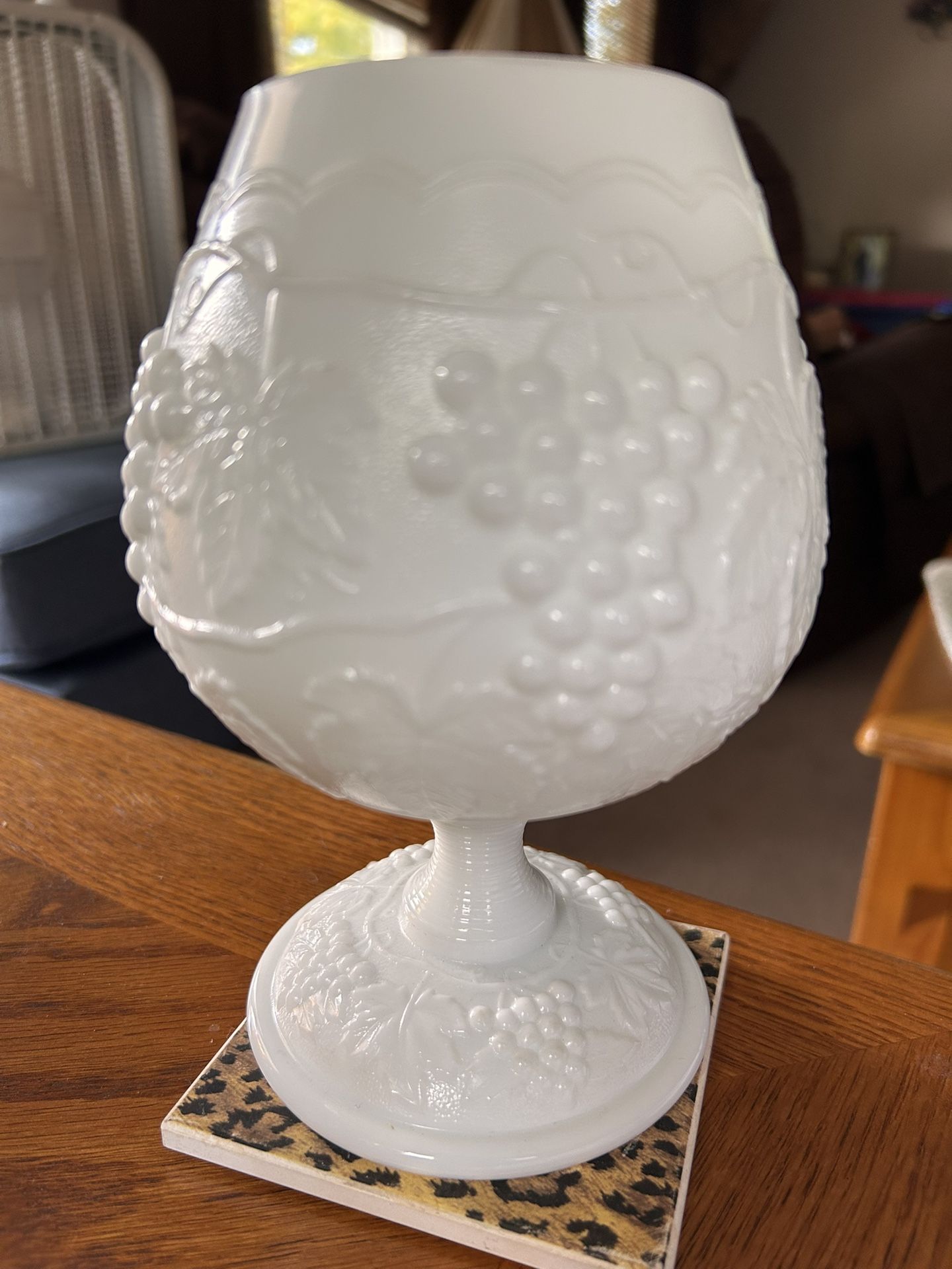 Vintage Imperial Milk Glass Harvest Grape Patterned Goblet. 7 Inches Tall.