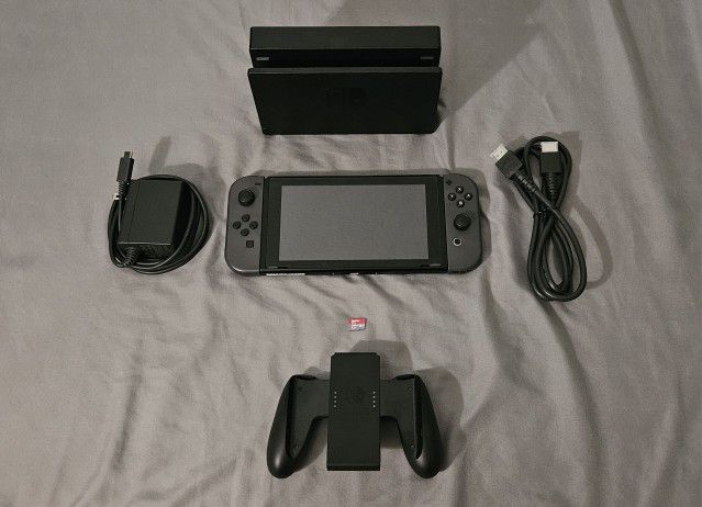 Nintendo Switch + 400GB Micro SD Card + Dock + Charger + Joycon Controller + HDMI Cable A Nintendo Switch with a screen protector in good condition physically. However, the battery seems to potentially overheat when placed in the dock to charge. If it's having difficulty turning on, make sure it's charged to a good amount and hold the power button for 15 seconds. I recommend getting a fan cooler for the Switch. The Joycons cannot scan amiibo.