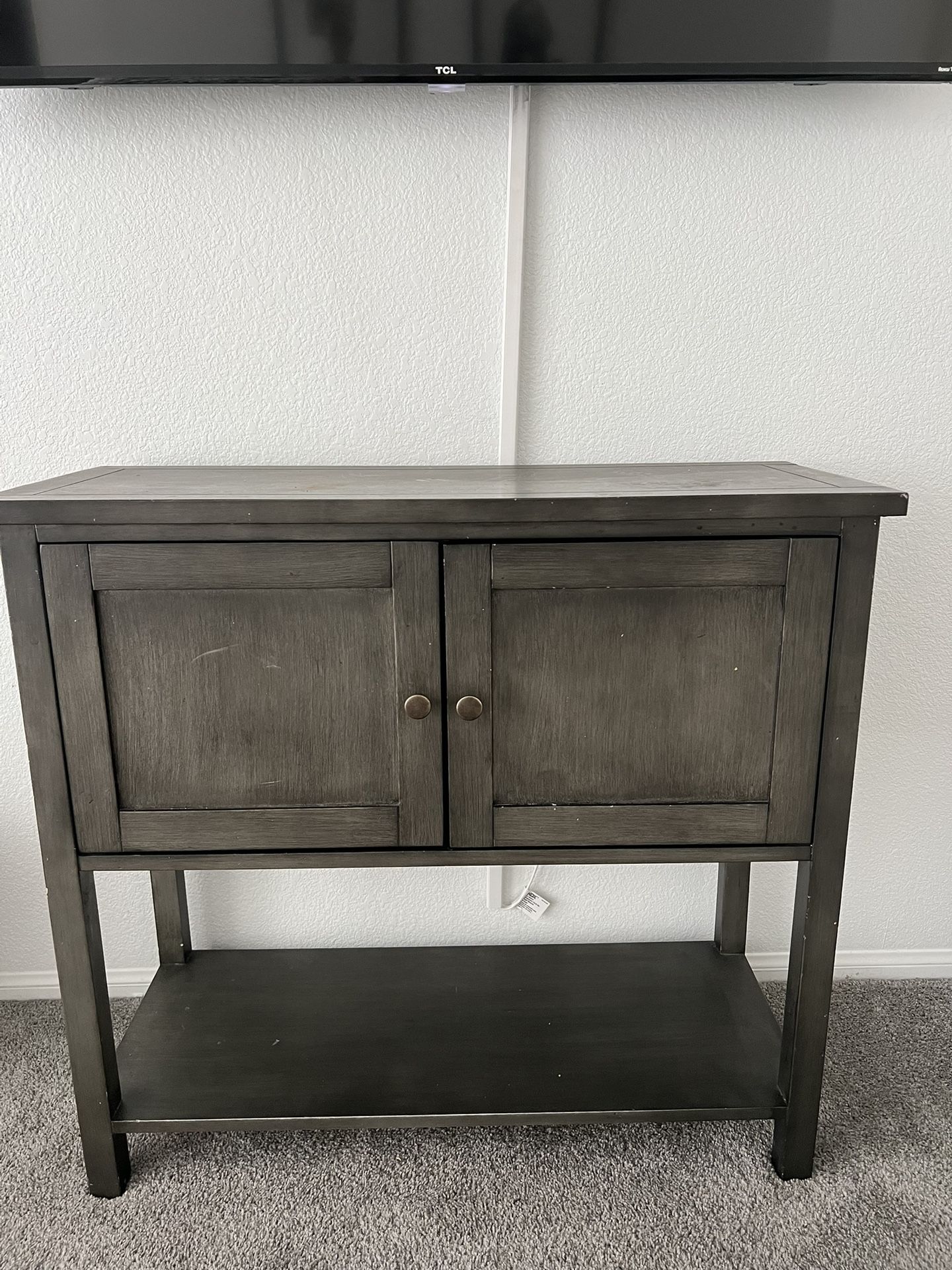 Very good condition. Nice grayish wood finish. Gently used. Spacious cabinet space.