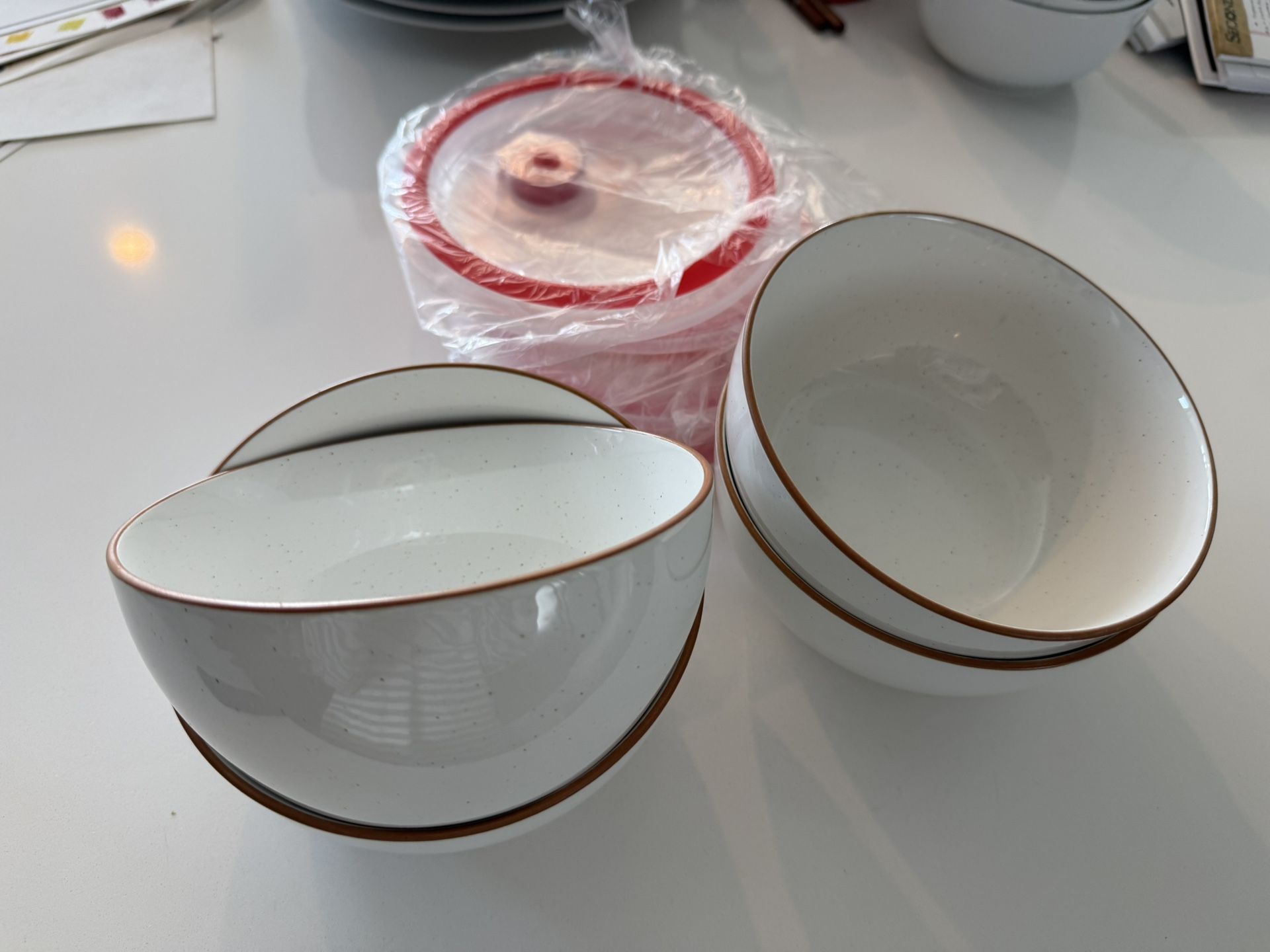 Ceramic Bowl Set – 4 Bowls + 4 Lids (28 oz) • Brand new, never used • Microwave, oven & dishwasher safe • Great for cereal, soup, pasta, salad, etc. 💰 Price: $10 📦 Pickup only