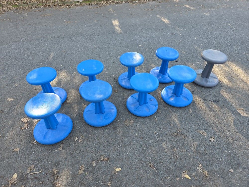 Made in USA! Sensory stools (fidget chairs) for classroom or home use (Lego tables etc) There are 9 for sale eight blue + one gray all the tops are on correctly (not damaged/loose) some are missing the bottom pad not a problem on carpet. Sell new for $100 per stool $100 for 4 $200 for all them pick up pleasant hill
