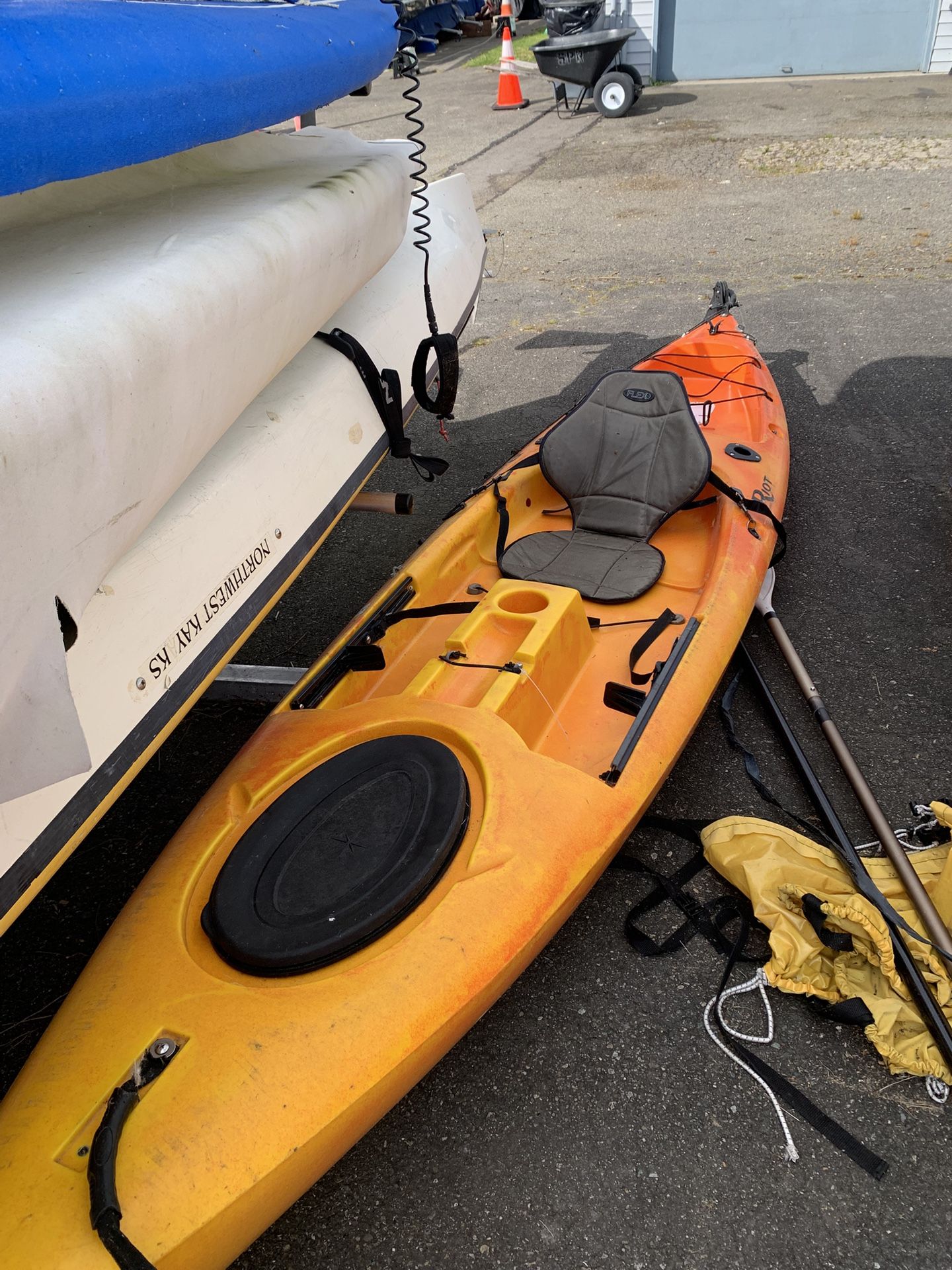 Touring kayak with pilot rudder system, ample storage & seat. 2 Rod holders & additional accessory mounts. Stern storage & sealed bow internal storage. Good condition. Stored on boat rack at marina. Capacity: 300lbs., Length: 12’, Width 30”, Height 12.5”, weight of kayak is 65 lbs. Have 2 total. Firm Price $250 each ($750 new)