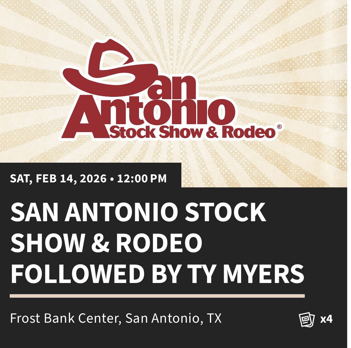 Ty Myers performing at the SA Rodeo on Saturday February 14, 2026 at 12pm