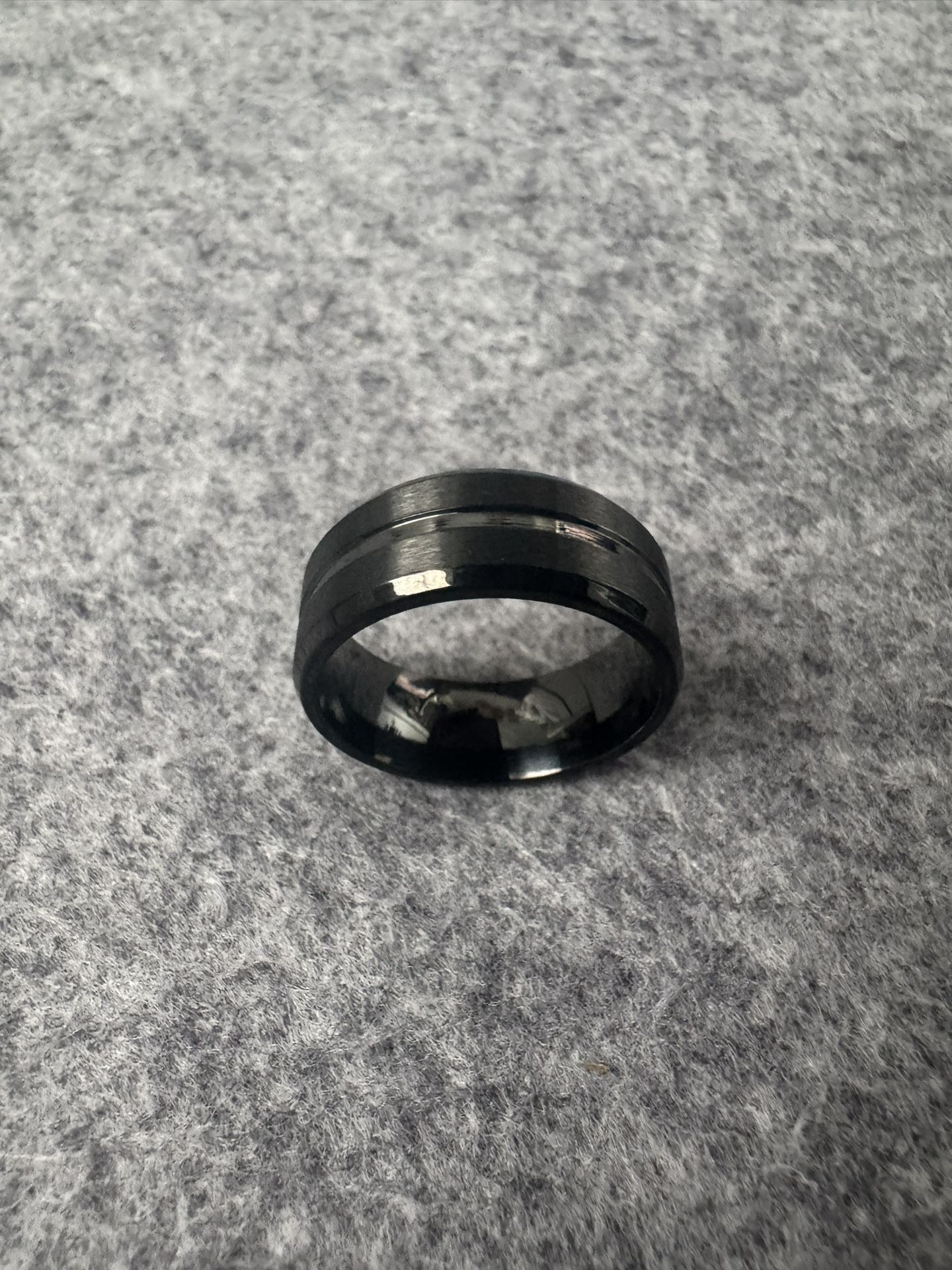 Sleek Black Plated Ring With Brushed Center Finish - Size 8