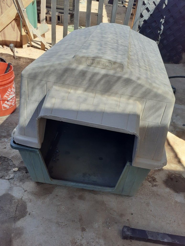 The dog house has some chew marks on the side but still in good condition
