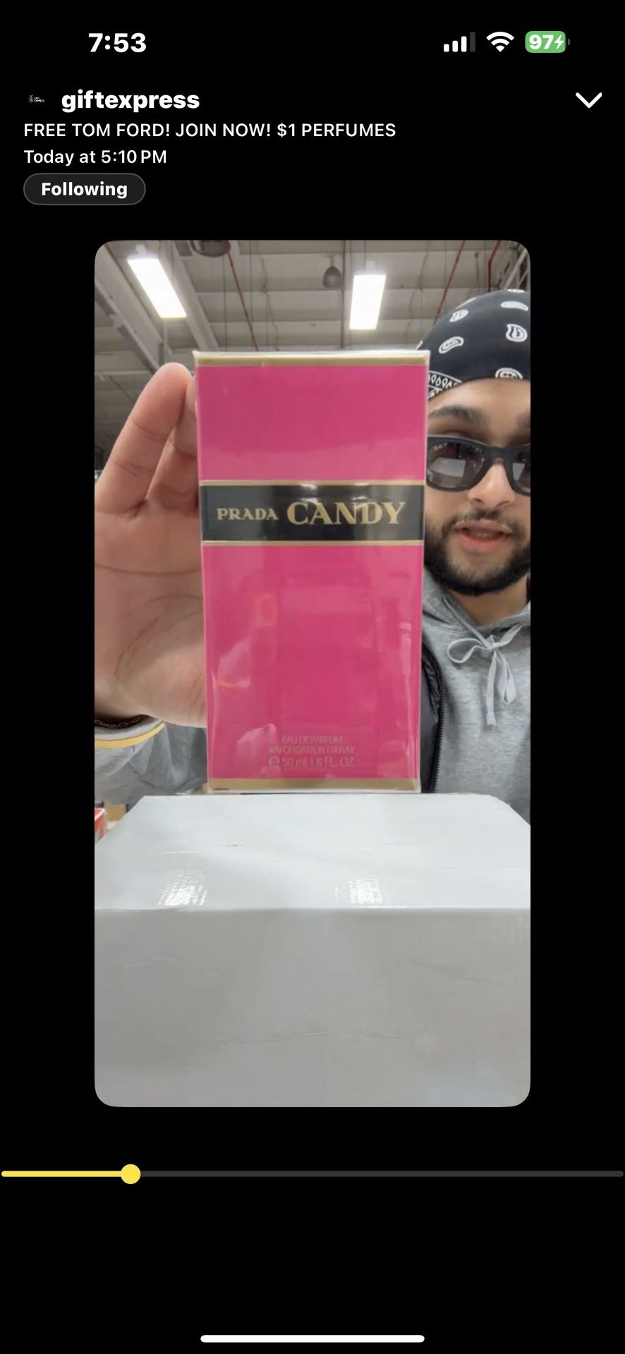 PRADA CANDY. Rethink reality with Prada Candy Eau de Parfum Spray, a joyful olfactory balance merging caramel accord with warm benzoin resin inside a cloud of white musk. A jolt to the system, this perfume triggers bugs of spontaneity in the software of life to open exhilarating spaces of re-imagined reality. 2.7oz